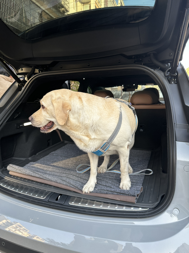 分享我的日常用车 提蔚来ES6已经一个多月了,平时上下班代步路程很近10分钟车程,主要还是周末和节假日出游跑长途爽,跑高速就开启领航辅助驾驶特别智能,特别是开夜路很轻松不会疲劳驾驶,记录我家狗子第一次坐后备箱,一直以为后备箱高度比较高,它跳不上去的,以后可以带它出去露营了,说到露营上次中奖了得了一个蔚来商场的露营灯,感觉质量特别好,之前我开启换电模式后再没充过电,充电都是去服务中心免费充的,又快还免费洗车,太开心