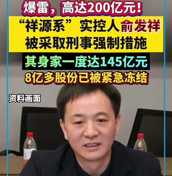 俞发祥的落网,与其说是个人的滑铁卢,不如说是高杠杆文旅资本游戏玩脱后的必然结果。祥源系以文旅投资为主,布局50余个文旅项目,覆盖世界遗产和A级景区,还跨界基建、地产。文旅项目本身就有投资大、回报周期长、现金流回收慢的特点,祥源系却靠着金融产品募资、高比例担保的方式疯狂扩张,相当于用“短钱”去投“长项目”。这种“以短搏长”的资本玩法,在市场行情好的时候能靠新债还旧债撑着,一旦资金面收紧、项目收益不及预期,债务链条必然断裂。浙金中心的产品逾期,不过是压垮骆驼的最后一根稻草。 200亿金融产品逾期兑付,上市公司火速撇清关系喊不关我事,核心股权却被全额冻结。一边是文旅、基建的光鲜版图,一边是高杠杆堆出来的泡沫,资本游戏玩脱了,买单的又是谁? 工作组都进驻了,监管利剑也亮了!别再拿积极沟通忽悠投资者,200亿窟窿怎么填?受损人的钱能不能追回来?这才是最要紧的。