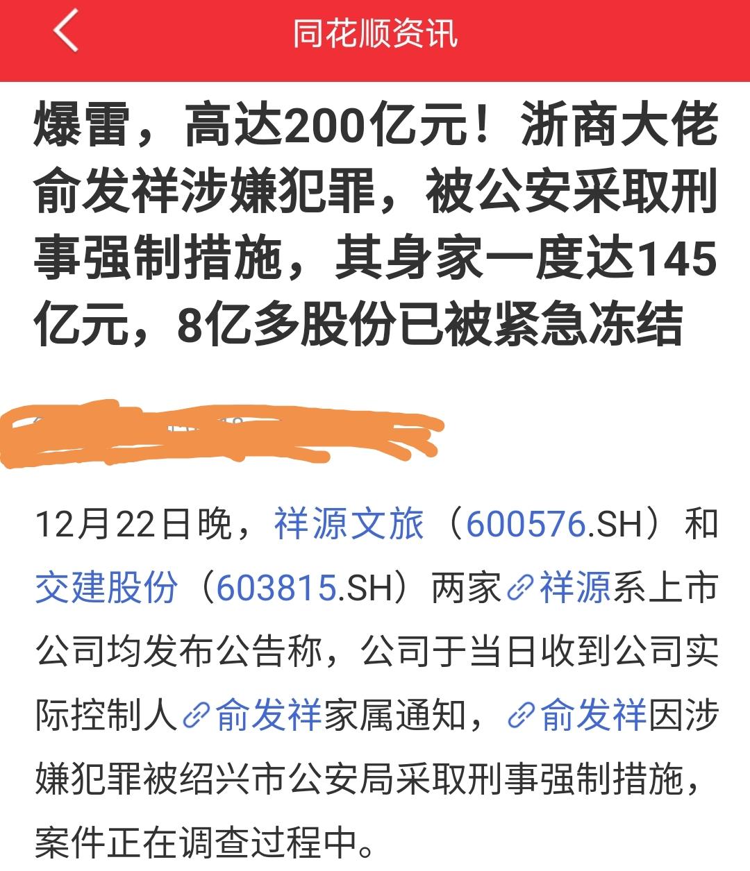 A股上市公司的抗风险能力确实强,还不是一般的强。 交建股份,公司实控人被采取刑事强制措施。 这要放别地儿,这家公司就完了,这就是万恶的美帝市场,一点抗风险能力都没有。 但咱们A股就不同,拥有成熟的交易系统和完善的防御手段。交建当晚就发了公告:此事件对公司一点影响都没有。 你没看错,是一点影响都没,仿佛被强制刑事措施的,不是公司实控人。 同时这个实控人,还有一家上市公司:祥源文旅。当然不出意外,一样有公告,内容除了公司名字不同,别无两样。 如果在发公告前后,两家公司一直在涨,我可能就信了,可惜在快要过去的12月,一家公司跌了17%,一家跌了34%。