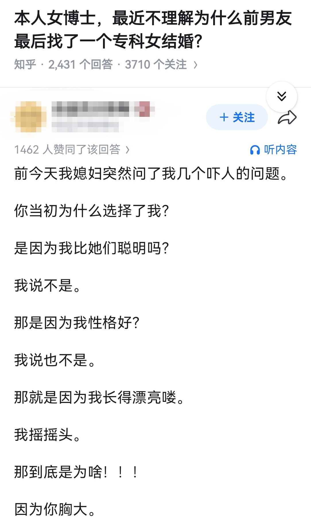 本人女博士,最近不理解为什么前男友最后找了一个专科女结婚?