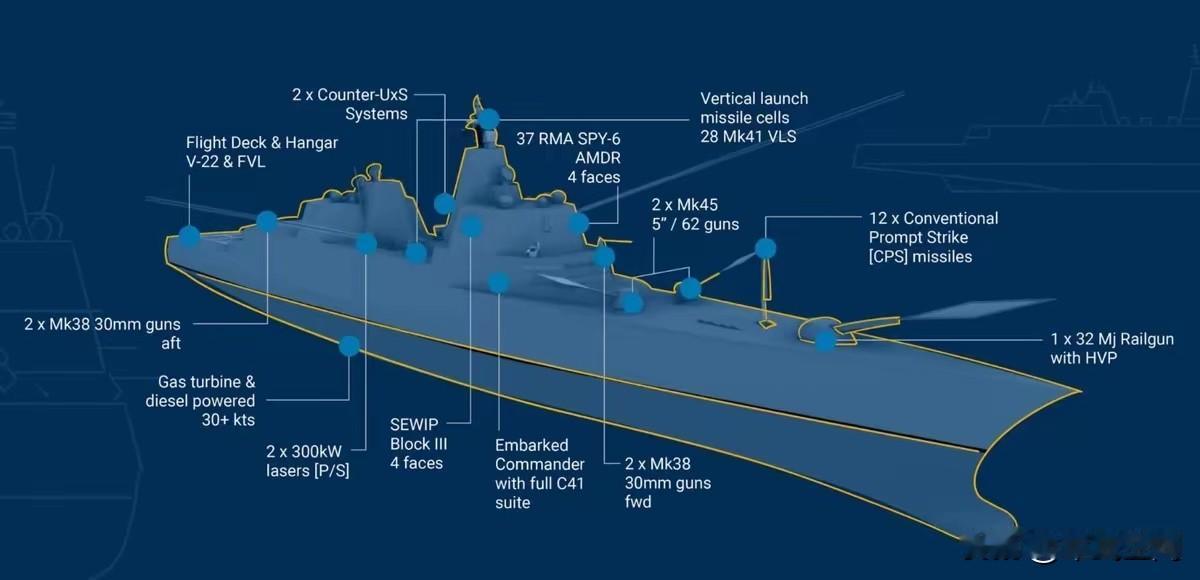 美国抄袭我055,建造3万吨级巨型驱逐舰。 特朗普级驱逐舰,是美国下一代大型驱逐舰,其舰长256米,舰宽35米,吃水量8米,满载排水量高达3万-4万吨,直逼全球现役大型两栖攻击舰,但其外形特别相似于我国055万吨级驱逐舰。 目前,美国计划开建2艘进行摸索,一旦技术成熟和新舰的试用通过验收,那么特朗普级驱逐舰的最终目标是20-25艘。 但这么大的军舰,也很可能将采用核动力。