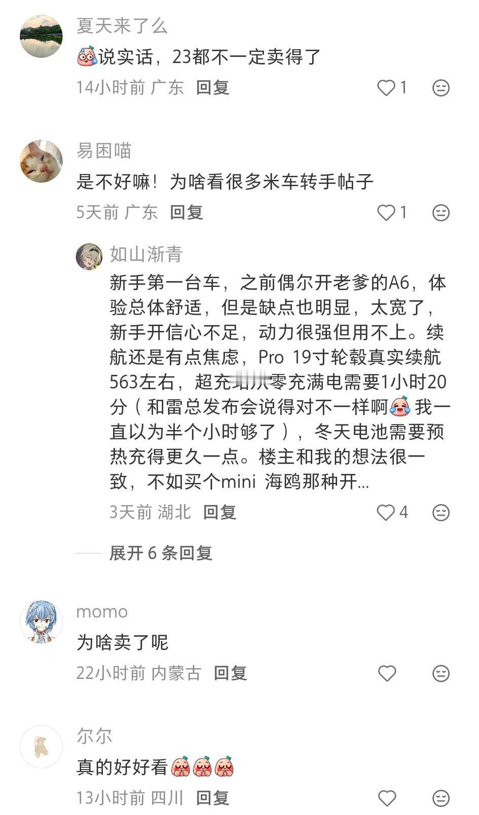 28w的小米yu7pro,国庆前提的车,开了3000公里,原版原漆,车主要价25.5w,大家觉得他这个价格能出了吗? 看到评论区有出20w,甚至比20还要低的,好像最多也就出到23.5w、23w。那些出到十几万的那就是戏弄车主了。 有网友道出实情:现在25.5估计卖不上了,换前一段时间可能差不多,现在杭州那事 一出,小米二手车的价格又跌了! 关键人家小米还有准新车呢,也能便宜两三万,我花同样的价格买你一台二手车,还不如买小米的准新车呢。大家说是不是这个道理?