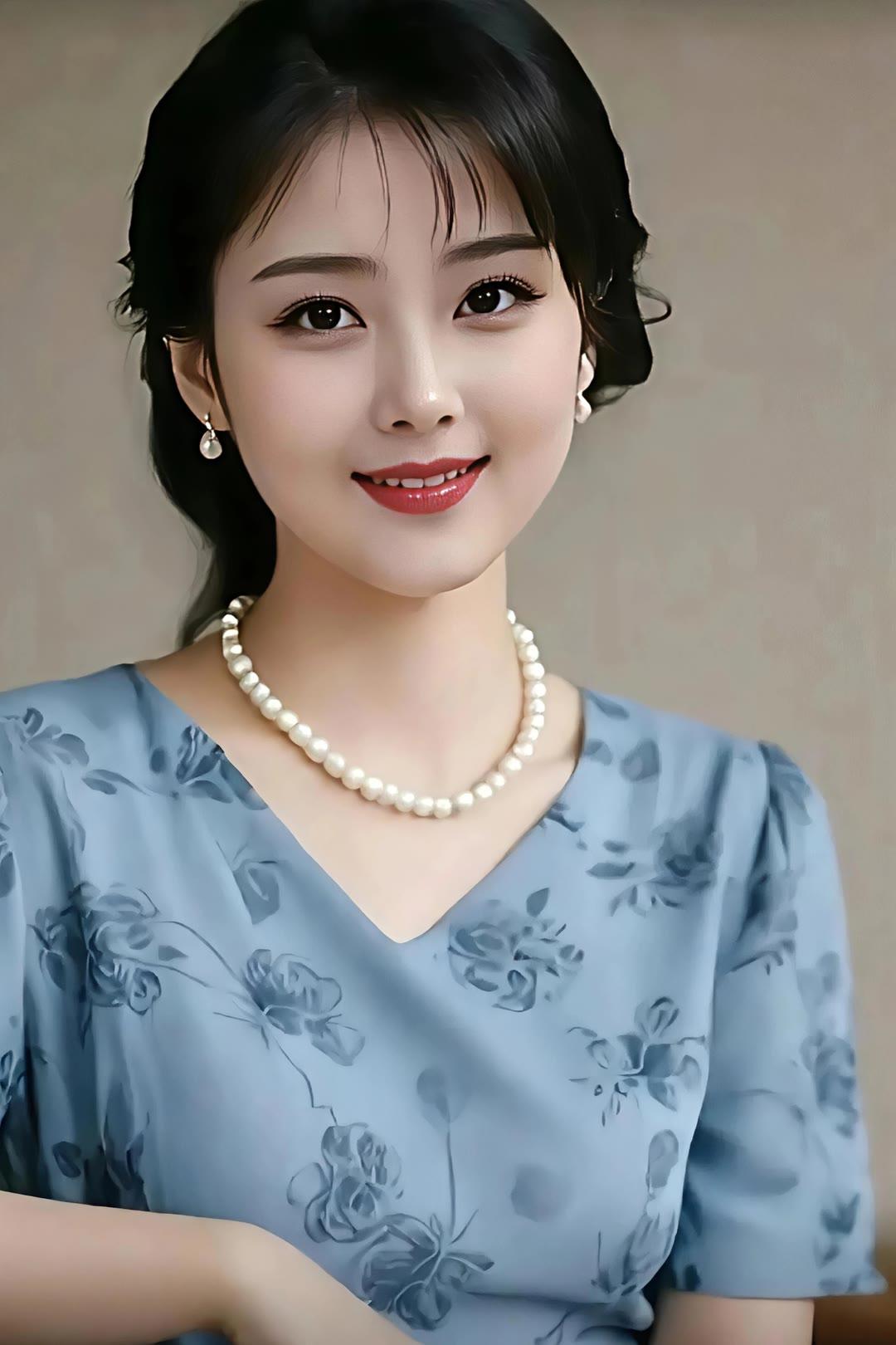 优雅气质,珍珠项链点缀,温柔微笑,时尚穿搭