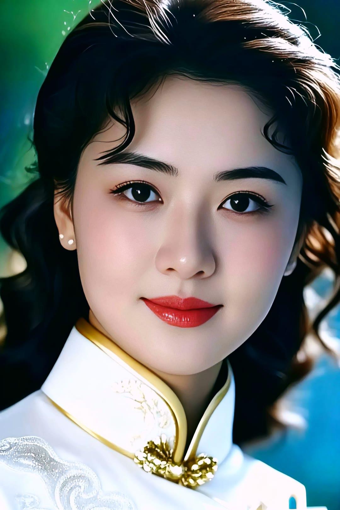 优雅旗袍少女,复古盘发,红唇微笑,古典韵味十足。
