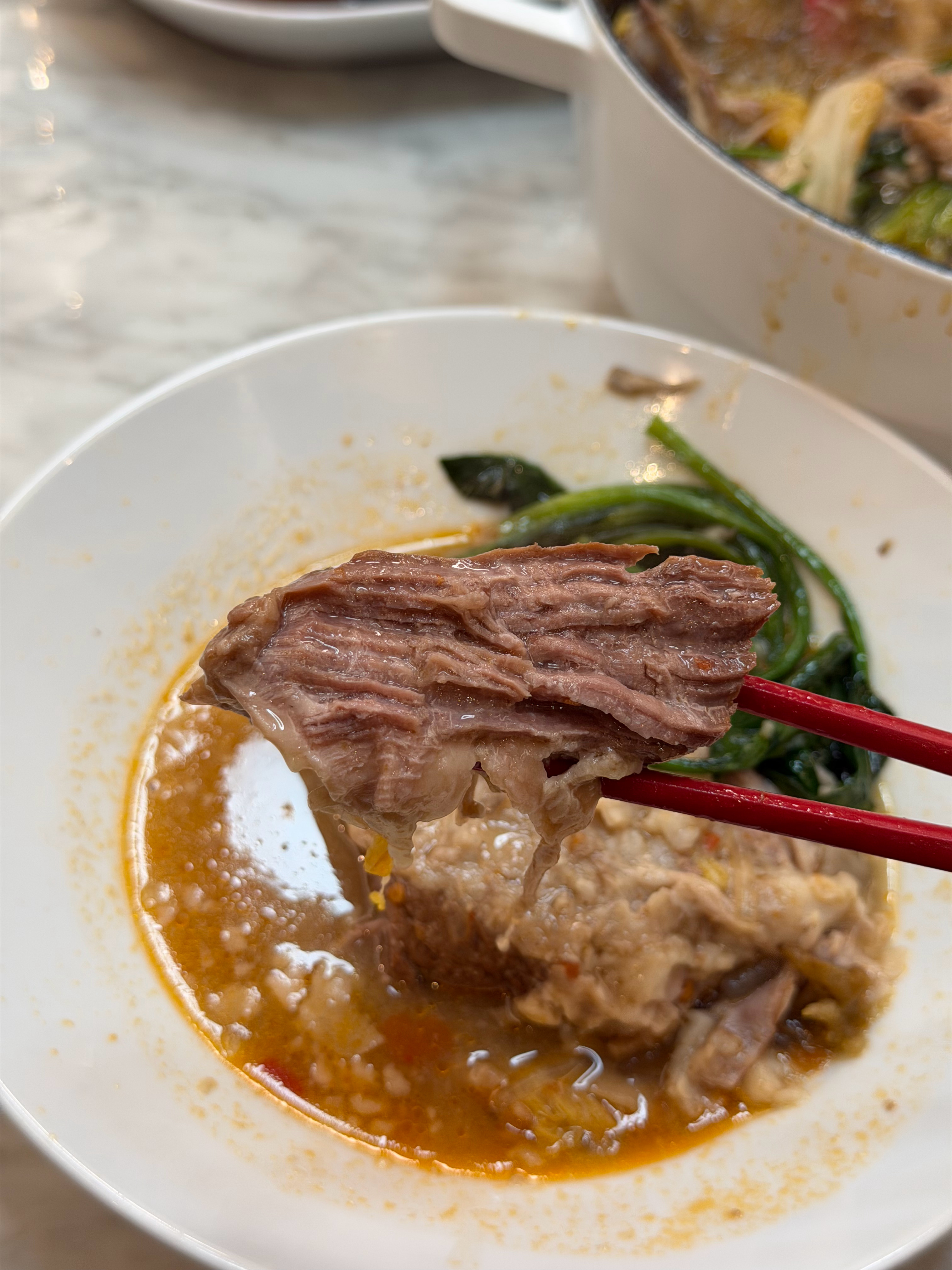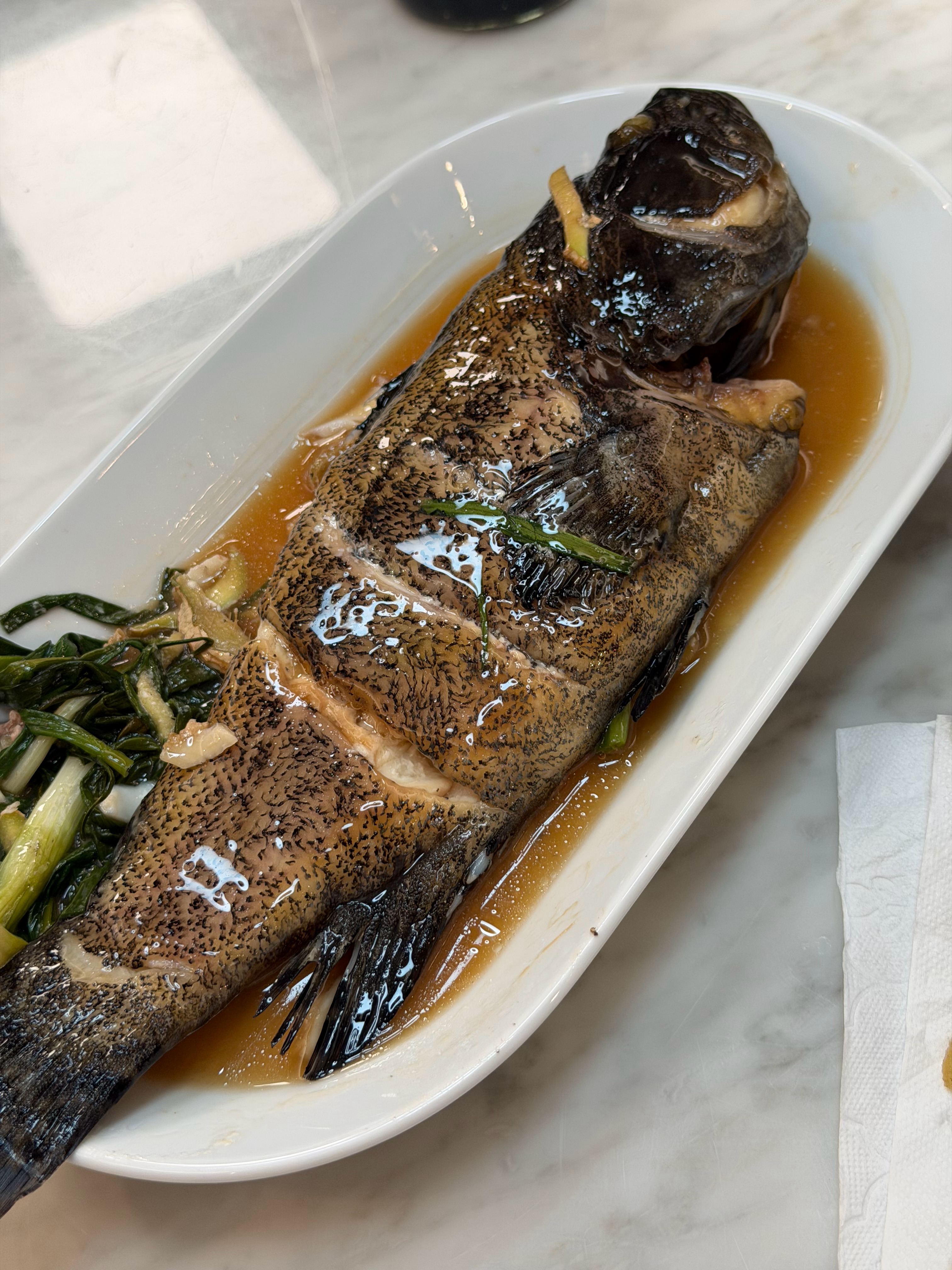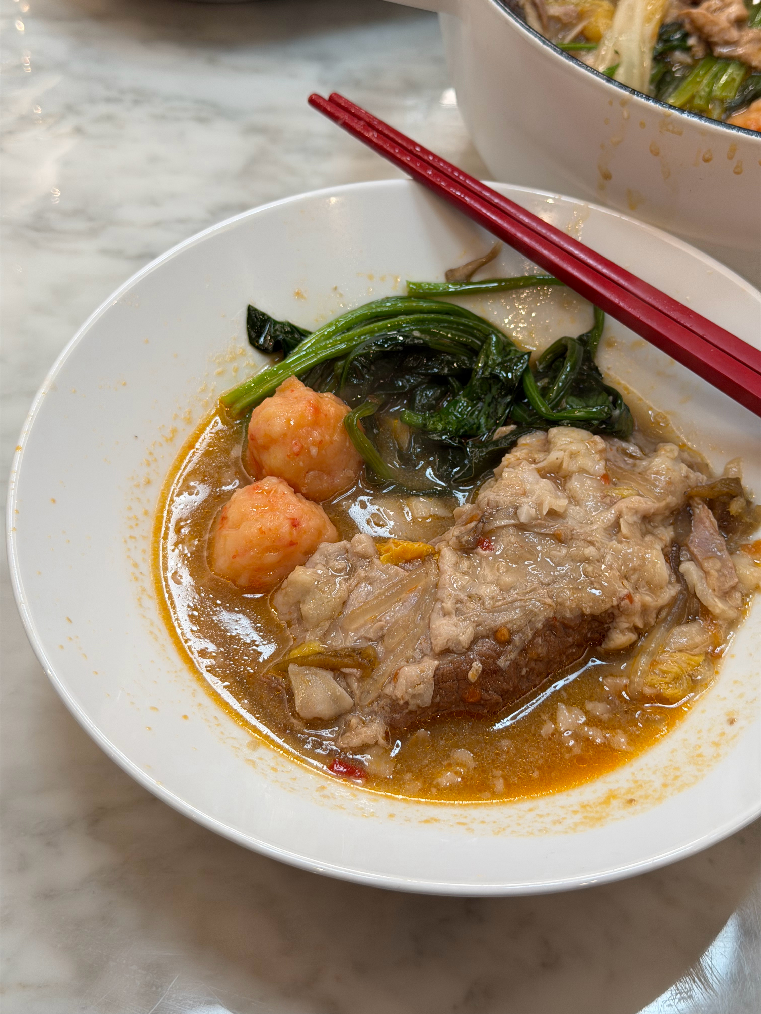 忙了一天刚到家,热腾腾的酸汤羊排配黑虎虾球,还有条清蒸石斑鱼,这感觉太好了