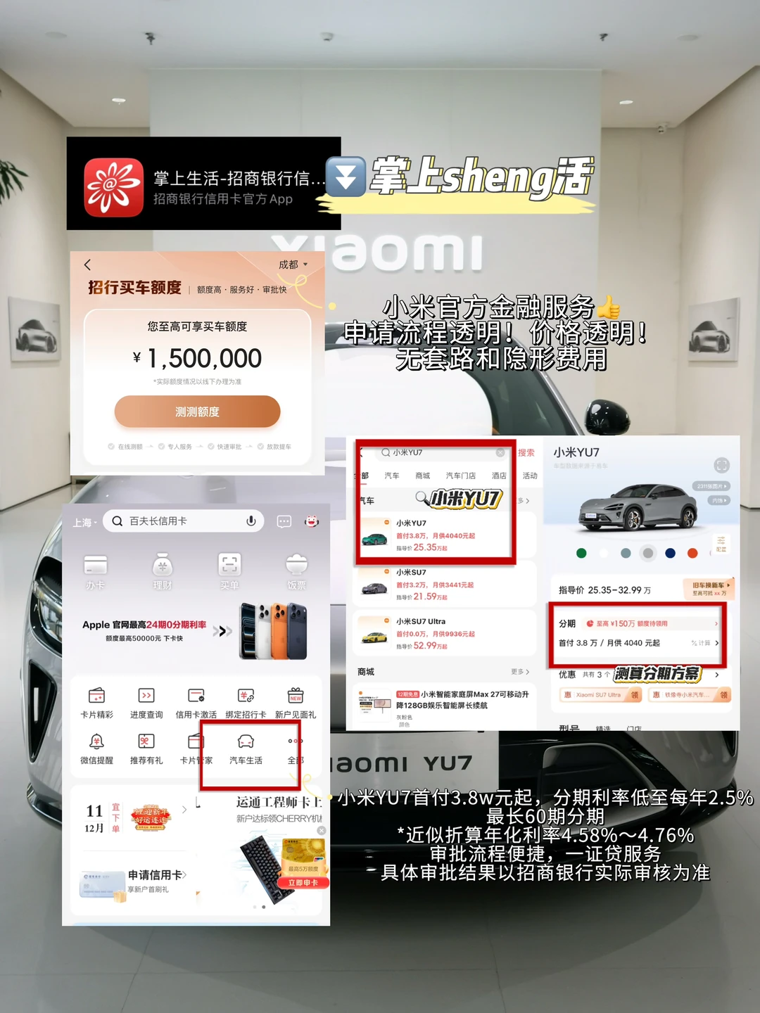 一直在犹豫要不要全款,朋友建议我手上留有现金流更安心,就选了招行信用卡车贷,是小米的官方金融,没有隐形消费不说,更不用担心泄露信息。