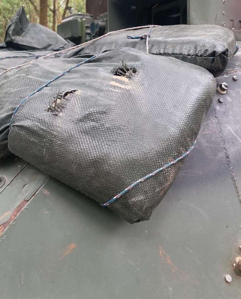 【图1】一辆泰国陆军VT-4坦克炮塔上的沙袋被柬埔寨军队发射的子弹命中【图2】一名泰国陆军M113装甲运兵车的驾驶员正准备登上装甲车的瞬间,一枚柬埔寨发射的 BM-21 火箭弹 落在装甲车旁、他所在的一侧,他被爆炸产生碎片击中后重伤不治。 泰柬边境冲突现场画面 泰柬冲突