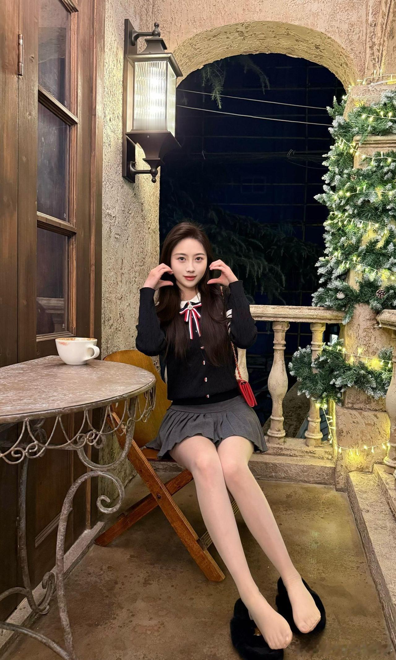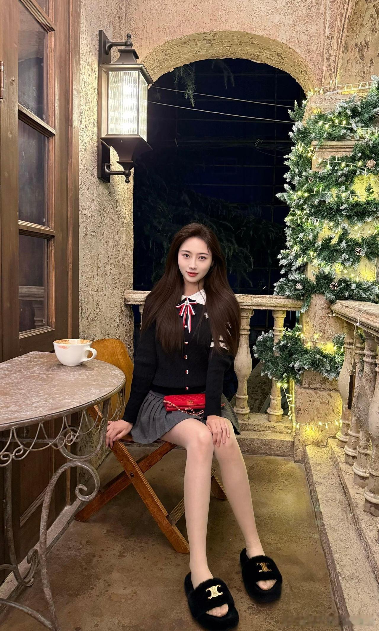 冬日暖阳下,咖啡与圣诞树相伴的浪漫时光。