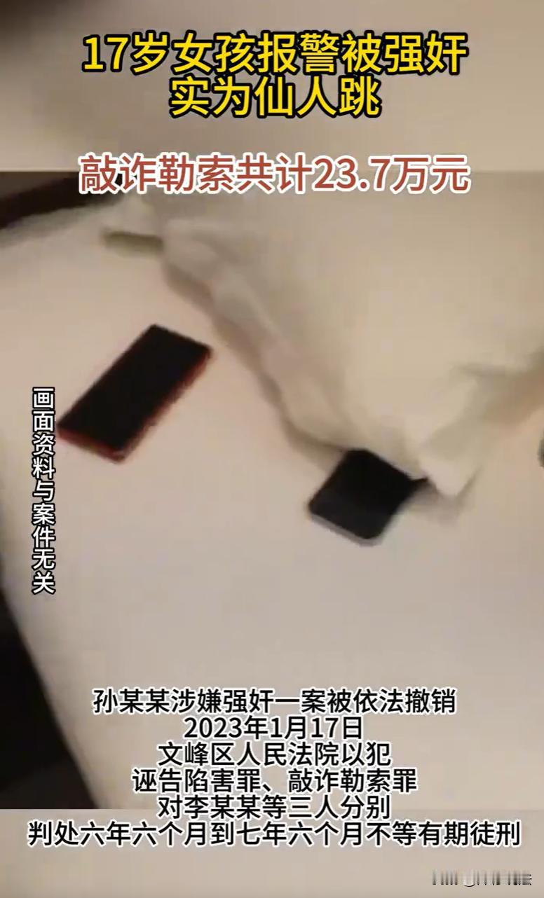 河南安阳,一男子通过交友软件结识了17岁的女孩,两人饮酒后于洗浴中心发生了关 系。不料,女孩突然报警称醉酒被强迫,男子还没反应过来就被警方刑拘。蹊跷的是,案发后,自称女孩的“姑姑”“姑父”上门,索要3万元作为“撤案”条件。警方察觉异常后商请检察机关介入。检察院调查发现,两人进入洗浴中心时举止亲密,毫无醉态,而所谓的“姑姑”实为女孩电话召来,年仅18岁,且三人案发前曾同住一家酒店。深挖之下,更惊人的事实浮现。 近日,最高人民检察院发布的一批指导性案例中,有一则案件看似“板上钉钉”的强J案,逆转揭露为一场流窜多省的“仙人跳”阴谋,并成功防止了无辜者蒙冤。 2021年10月30日,时年24岁、无固定职业的孙某某,通过一款流行的交友软件,结识了女孩李某某,短暂交流后,二人决定线下见面。 当晚,他们一同吃饭、饮酒,随后关系迅速升温,一同前往市内一家洗浴中心,并在那里发生了关 系。 然而,李某某突然拨通了报警电话,声音带着惊恐与无助,声称自己因醉酒,意识不清,被刚刚认识的孙某某侵害了。 警方接报后火速出警,现场勘查和初步询问,发现孙某某身上有几道明显的抓痕,李某某坚称那是自己反抗时留下的。 结合李某某关于醉酒后被侵犯的陈述,警方果断立案,并以涉嫌强J罪对孙某某采取了刑事拘留的强制措施。 2021年11月3日,孙某某的家属向公安机关提交了一份关键材料,一份由李某某亲笔书写的“自书材料”。 在这份材料中,李某某声称双方发生关系是自愿的,自己之前是“报假案”。 更引人注目的是,家属透露,这份材料的获取是有一男一女自称是李某某的“姑姑”和“姑父”,他们主动找到孙家,提出只要支付3万元“赔偿款”,就可以让李某某撤案并出具澄清材料。 救人心切的孙家支付了这笔钱,果然拿到了这份“翻供”材料。 这份突如其来的“和解”与矛盾陈述,立刻引起了办案民警的高度警惕。 警方意识到此案可能远比表面复杂,属于重大疑难案件,遂依据相关工作机制,商请负有法律监督职责的检察院介入,就案件定性、证据收集等听取专业意见。 检察院调查后,发现那位在现场以李某某“姑姑”身份担任“合适成年人”的女子,实则是李某某通过电话叫来的。但观察其外貌,年纪很轻,与“姑姑”的称谓和身份严重不符。 案发后冒出的“姑姑”“姑父”,以撤销报案为条件索要3万元,行为模式更接近于敲诈勒索,而非正常家属的情感诉求或民事调解。 且在收到钱、出具材料后,这两人便不再接听警方电话,形同消失,极不寻常。 而案发洗浴中心的监控视频显示,李某某与孙某某进入时,两人行动自如,举止间甚至显得比较亲密,完全不像是一方醉酒不省人事或被迫前行的状态。 检察院认为这可能是一场有预谋的、利用性关系诬告并勒索钱财的骗局,也就是俗称的“仙人跳”。 随后,公安机关完全采纳了检察意见,对李某某、王某甲、王某乙以涉嫌诬告陷害罪立案侦查,并于次日在外省将三人成功抓获。 经查,自2021年6月至11月这短短五个月间,李某某等人流窜于河南、四川、陕西、湖北、安徽等5个省份的8个地方,采用 完全相同的“剧本” 作案。 他们共计实施诬告陷害8起,其中4起成功勒索到钱财,总额高达23.7万元。 很快,公安机关撤销了将被无辜关押数日的孙某某刑事案件,检察院以诬告陷害罪、敲诈勒索罪对李某某等人提起公诉。 法院会如何判决呢? 《刑法》第二百四十三条规定,捏造事实诬告陷害他人,意图使他人受刑事追究,情节严重的,处三年以下有期徒刑、拘役或者管制;造成严重后果的,处三年以上十年以下有期徒刑。 法院指出,李某某在发生关 系后立即报警称被侵害,意图主动启动刑事程序,主观上具有使他人受刑事追究的直接故意 客观上,李某某等人其捏造“醉酒被强迫”的虚假事实向公安机关告发,导致孙某某等人被立案侦查甚至羁押,严重干扰司法秩序,符合“情节严重”情节。 法院认为,李某某等人已经构成诬告陷害罪。 此外,《刑法》第二百七十四条规定,敲诈勒索公私财物,……数额巨大或者有其他严重情节的,处三年以上十年以下有期徒刑,并处罚金。 法院进一步指出,李某某等人利用其制造的刑事追诉风险作为胁迫工具,以“撤案”为条件向孙某某等人索要财物,非法占有目的明确。 而孙某某等人正是因为其威胁继续刑事追究,才被迫出钱消灾,涉案金额23.7万元,已达“数额巨大”标准。 法院认为,李某某等人同时构成敲诈勒索罪,依法应当数罪并罚。 而且,三人流窜五省八地,针对不特定对象多次作案,行为模式专业化,社会危害性极大,应予从严惩处。 最终,法院对李某某等三人分别判处六年六个月到七年六个月不等有期徒刑。 对此,您怎么看?
