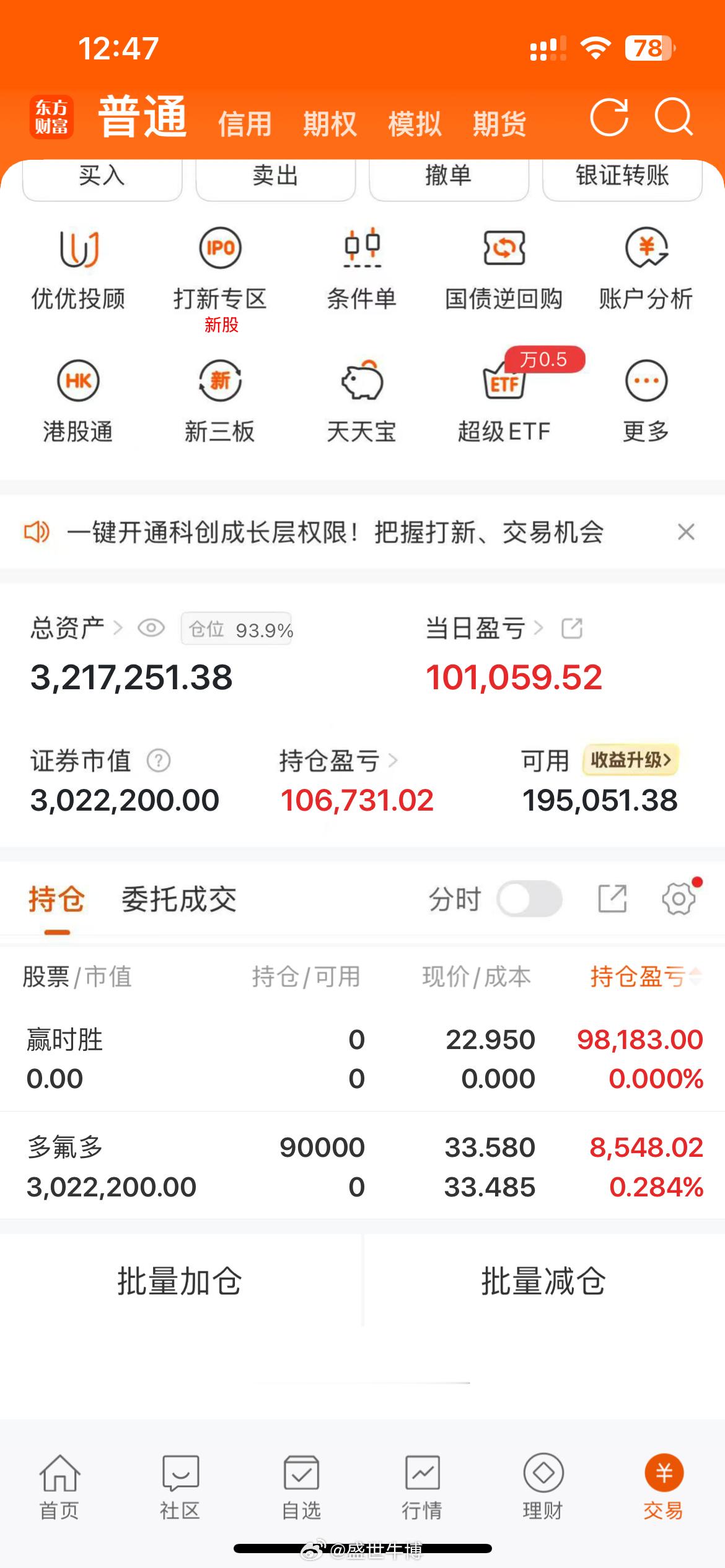 铁粉们中午好,说一下我的最新调仓,赢时胜落袋,参与了多氟多!收到给我点赞评论66