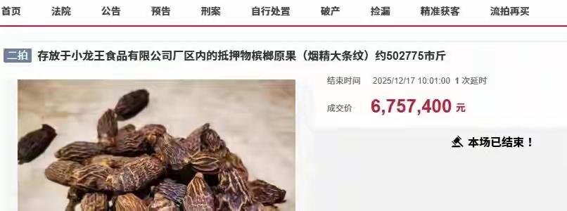 湘潭的小龙王槟榔公司倒闭了,曾经的湘潭县利税大户,风光了20余年,现官司缠身,被执行债务高达5亿余元,法拍库存槟榔超过百万斤,标的高达4千余万。 槟榔成为地方产业,为地方创税大户,成为就业大户。几年前市场监督部门才把槟榔从食品目录中移出,不允许以食品名义生产和销售,但湖南的槟榔并不受此影响。 “槟榔加烟,法力无边”。嚼槟榔的、不嚼槟榔的,听了小龙王的故事,你会有何感想? 槟榔王 槟榔品牌排行榜 槟榔流水线 湘潭槟榔加工厂 湖南槟榔工厂