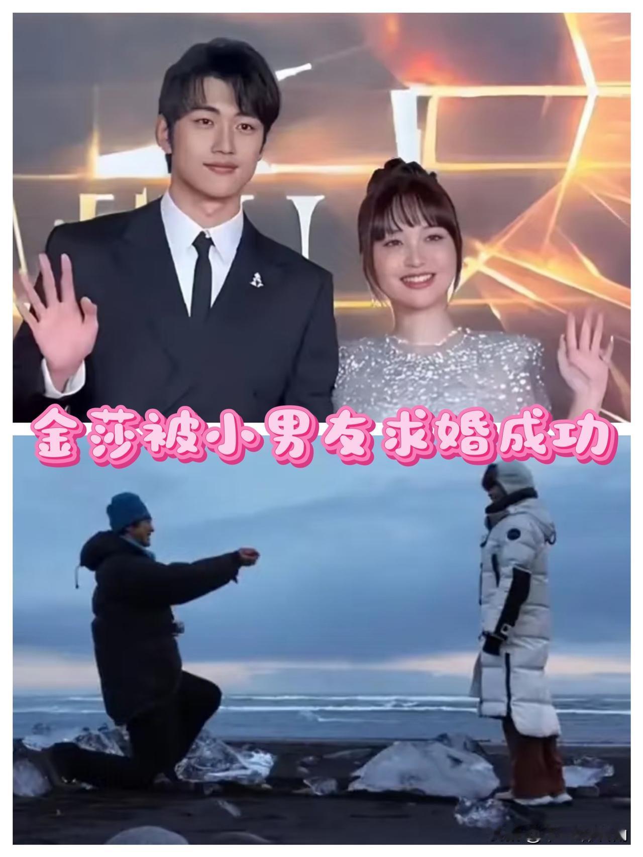 这波狗粮我先干为敬! 相差19岁的姐弟恋,金莎自曝求婚现场,和小男友恋爱两年终成眷属,唯美画面堪比偶像剧! 刷到金莎发出来的视频,还真挺让人眼前一亮,在那冰天雪地的冰岛钻石沙滩,孙丞潇这小伙子直接单膝跪地了。 说实话,这场景确实有点惊艳,唯美得跟拍电影似的,但这可是整整19岁的年龄差啊! 想当初这一对刚公开的时候,多少人觉得是“玩玩而已”,甚至觉得男方是不是图点啥,结果人家硬是谈了两年多,现在还真走到求婚这一步了。 视频里两人又是拥抱又是热吻的,看着金莎那一脸沉浸的样子,估摸着是真陷进去了,这时候再去谈什么般配不般配也没啥意思,反正这钻戒是戴上了。 成年人的感情,自己乐意就行,至于能不能熬过柴米油盐的平淡日子,那是后话,但此刻的浪漫和真心,确实让人羡慕! 金莎 真挚姐弟恋 圈内姐弟恋 影视圈儿姐弟恋