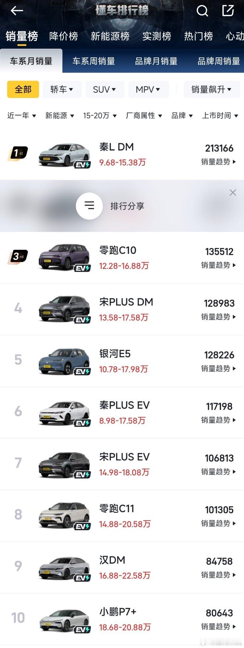 很多人有一些错觉,小米造车行了,其他终端厂商也行;比亚迪没有品牌力。很早就说了,造车必须要有一个强而有力的领导人,小米有雷军,华为有余承东,ov呢?有些人可能要来抬杠,单如果没有这样一个领导人,重大事项怎么拍板?如果不是一个强人,出了问题谁负责?还有中低端车型,不仅要看产品力,也要看品牌力的,比亚迪、吉利这种老牌车企,就是比一些小众品牌更有说服力。能以这个价位买车的,都是作为耐用品去使用的,所以就会更倾向于选择老牌车企。就拿15-20w价位新能源汽车来对比,你数一下里面有多少款比亚迪的车型?事实胜于雄辩了。