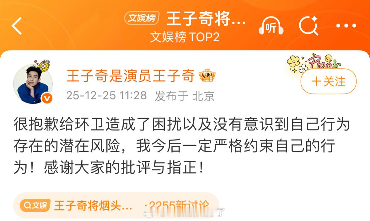 王子奇为自己把烟头丢出窗外的行为道歉。王子奇将烟头丢出车窗外