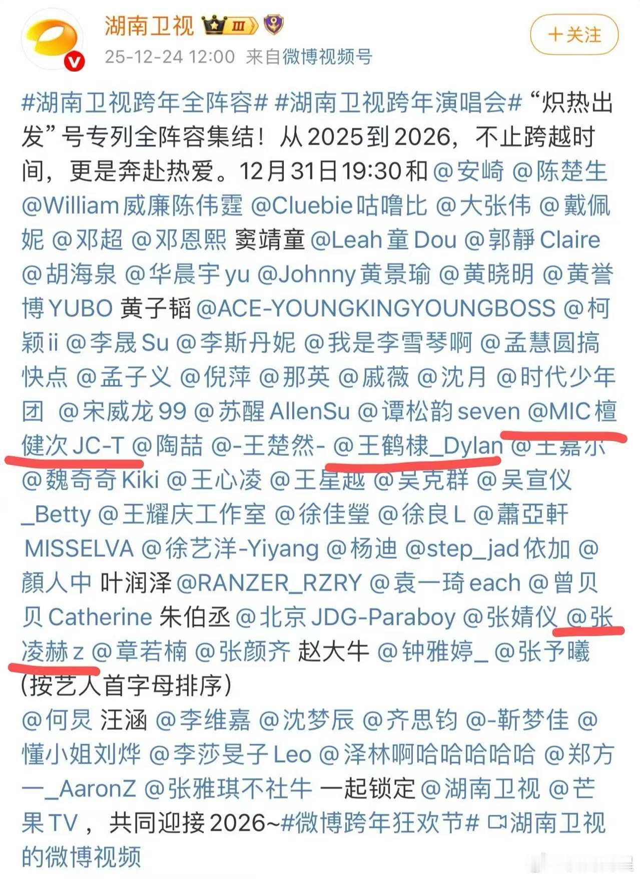 湖南卫视跨年最终名单终于官宣完了!这阵容真的绝了,简直把各个领域的大咖都集齐了—