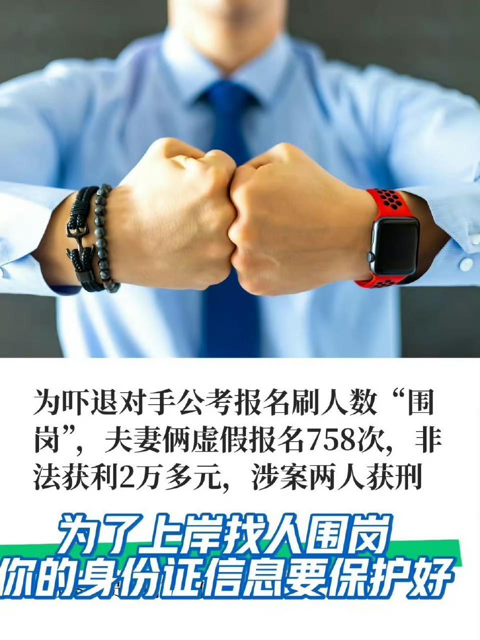 “围岗”公务员听说过吗?简单来讲,就是你想考上公务员,便找很多人报名你要报考的岗位,以此吓退竞争对手,到考试时去的人寥寥无几,这样你上岸的几率就大幅提升了! 今年2月,某省公务员考试报名期间,一名考生到人事考试院举报,称自己的个人身份信息被盗用。 随后经公安机关查证,某培训机构老师周某为“围岗”找到了李某。 李某在淘宝上找到陈某,花28189元购买了748条该省人事考试网实名账号信息。之后,陈某与其妻子在酒店虚假报名公务员考试758次,总计获利25625元。 最终法院判决:被告人陈某犯侵犯公民个人信息罪,判处有期徒刑一年,缓刑二年,并处罚金人民币三万元;被告人李某犯侵犯公民个人信息罪,判处有期徒刑十个月,缓刑一年六个月,并处罚金人民币三万元;没收违法所得。 有意思的是,对他们的处罚依据是侵犯公民信息罪,并未提及对国家公务员岗位“围岗”犯罪。也就是说,假如你找几百人为你“注水”,目前是可行的。 但这无疑是法律层面的一个漏洞。“围岗”行为严重破坏了公务员考试的公平公正原则,让那些真正有能力、有志向为国家和人民服务的考生失去了公平竞争的机会。 公务员考试作为选拔国家公职人员的重要途径,其公正性关乎着国家行政体系的健康发展和社会的稳定。“围岗”这种不正当手段,就像是一颗坏菜,侵蚀着考试制度的公信力。 从考生的角度来看,那些辛苦备考、凭借自身实力竞争的人,却可能因为“围岗”行为而被无端淘汰,这对他们的努力和付出是极大的不尊重。而对于那些试图利用“围岗”上岸的人来说,即便成功进入岗位,他们的能力和素质也未必能胜任工作,这将给国家和人民带来潜在的危害。 相关部门应该重视这一现象,尽快完善法律法规,明确“围岗”行为的违法性质和相应的处罚措施。只有这样,才能维护公务员考试的公平公正,让真正优秀的人才脱颖而出,为国家的发展贡献力量。