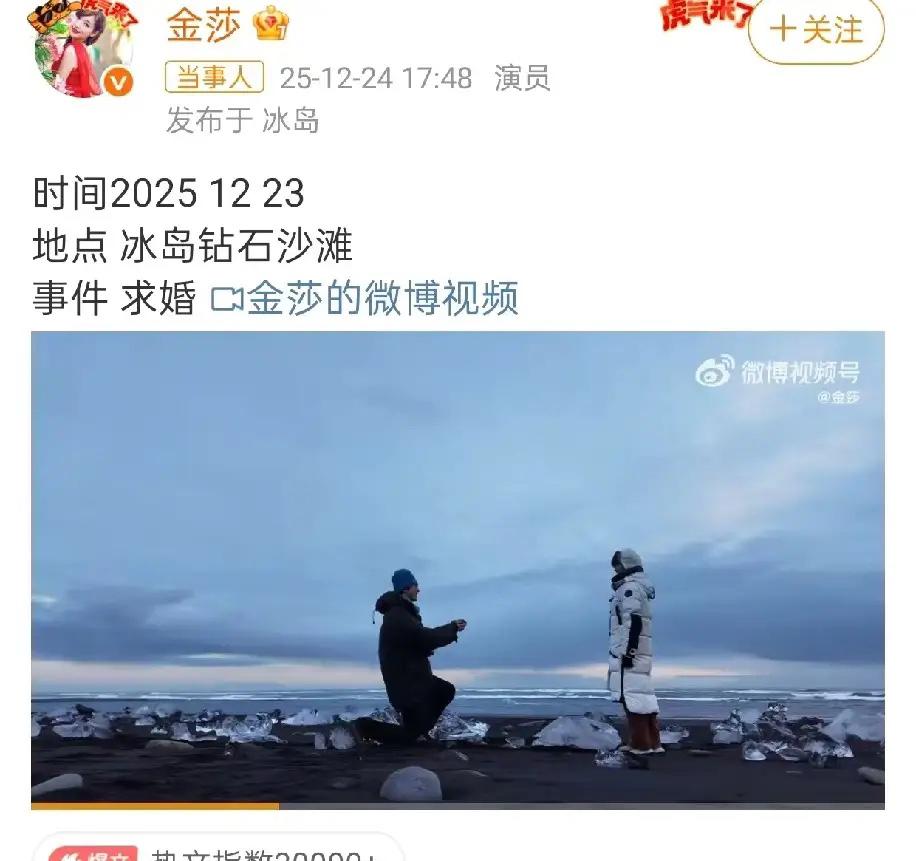 12月24日,42岁的金莎发文官宣了一件大喜事,那就是比她小了19岁的男友孙丞潇在冰岛单膝下跪向她求婚了。 冰岛的极光下,这一幕确实够浪漫,也够“头条”。42岁的金莎,和23岁的孙丞潇,这19岁的年龄差像一道深深的刻度,量出了祝福,也量出了质疑。有人说这是真爱无畏,有人嘀咕这是“母子恋”炒作。一段感情能被如此撕裂地解读,本身就说尽了世相。 让一些人难受的,或许不是年龄差,而是“女大男小”的错位。社会对“老夫少妻”早已见怪不怪,甚至传为佳话。一旦性别对调,嘲讽与猎奇的目光便扑面而来。凭什么?这背后藏着的,是对女性年龄价值的残酷贬低,仿佛女人过了某个年纪,就失去了被年轻男性纯粹爱慕的资格。 再看看两人状态。金莎保养得宜,依然甜美,但在娱乐圈打拼二十余年,她的眼神里有故事,有沉淀。孙丞潇刚从中戏毕业,青春正盛,人生履历几乎是一张白纸。这种人生阶段的巨大鸿沟,比数字上的19岁更具体。他们聊什么?未来的规划能同步吗? 舆论的喧嚣里,夹杂着一种隐秘的“计算”。人们忍不住替金莎算:你图他什么?图他青春?可青春会流逝。图他单纯?可单纯易变。又替孙丞潇算:你图她什么?名气?资源?还是那份成熟的庇护?一段感情若被放在天平上反复称量,它的纯粹便首先受到了侮辱。 但或许,我们该换个思路。金莎不缺名,不缺利,她缺的或许正是这份不被世俗眼光绑架的“冲动”。在见惯了名利场的计算后,一份简单炙热、不求“门当户对”的情感,反而成了最奢侈的东西。这场求婚,于她,可能是一次对内心少女感的终极成全。 真正的考验,不在求婚的冰岛,而在回国后的烟火人间。激情褪去后,两人要面对的是作息差异、朋友圈层不同、未来生育等现实议题。女方的阅历既是魅力,也可能成为关系中无形的压力源。能否将这些差异转化为互补而非隔阂,才是爱情能否落地的关键。 我们不必急着唱衰或祝福。这是他们的人生实验。成功了,是一段传奇佳话;失败了,也是一次勇敢的自我追寻。社会观念的进步,恰恰需要这样“非常规”的案例去一次次冲撞边界。每多一对“金莎孙丞潇”,大众的接受度阈值就可能被推高一点。 说到底,爱情是两个人之间最微观的政治。它关乎权力、需求、成长与妥协。年龄、财富、地位都是变量,但核心方程永远是:两人能否在彼此的世界里,找到持续共同生长的动力与愉悦。这个答案,外人永远无法代答。 所以,把掌声和嘘声都收一收吧。让他们自己去走,去体验。我们旁观者的最大善意,不是预言,而是尊重。尊重一个人,无论男女,在任何年龄,都有选择如何去爱、与谁相爱的自由。这份自由本身,就比极光更绚丽。 各位读者你们怎么看?欢迎在评论区讨论。