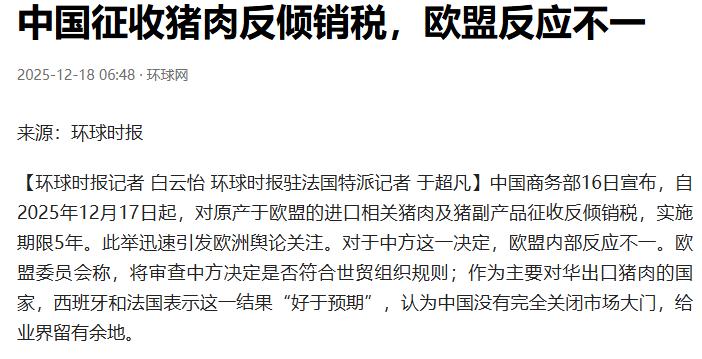 【被中方反制打疼!法国找欧盟撑腰,要求报复中国,不料又挨美抽打】 这阵子中欧贸易圈里最热闹的事儿,就得数法国带头挑事反被收拾的戏码了。当初欧盟铁了心要对中国电动车加税,明眼人都看得出来,背后最卖力推动的就是法国总统马克龙和欧盟委员会主席冯德莱恩。 那时候法国喊得最响,觉得能靠着这招把中国电车挡在欧洲门外,保住本土汽车产业的地盘,可他们万万没料到,中方的反制来得又快又准,而且专挑法国的痛处打,现在好了,搬起石头砸了自己的脚,成了整个欧盟里受伤最重的那个。 要说中方的反制有多精准,看看法国的支柱产业就知道了。先是法国引以为傲的白兰地,再是享誉全球的乳制品,全被纳入了反制清单,加税之后直接让法国相关企业苦不堪言。 就拿乳制品来说,中方前不久宣布对原产于欧盟的进口乳制品实施临时反补贴措施,从价补贴率最高能到42.7%,而抽样的15家企业里有12家都是法国公司,像罗克福、卡芒贝尔这些标志性的法国奶酪品牌全在其中。 反观同样是欧盟成员国的西班牙,日子就好过多了。前段时间中方对欧盟进口猪肉及猪副产品征收反倾销税,税率在4.9%到19.8%之间,而西班牙企业拿到的基本都是低档位税率,平均下来也就9.8%。西班牙农业大臣都公开表示,这个结果完全可以接受,对本国产业的影响已经降到了最低。 为啥待遇差别这么大?明眼人都清楚,这就是因为西班牙一直保持着理性沟通的态度,今年首相和国王还相继访华,积极维护中欧经贸关系,而法国却一门心思带头挑事,现在落得这个下场,只能说是求锤得锤。 被打疼了的法国这时候才想起找靠山,马克龙先是公开表态说中方的反制“不可接受”,紧接着就火急火燎地向布鲁塞尔求援,要求欧盟27国统一立场,一起对中国采取反击措施。可马克龙显然是高估了自己在欧盟的号召力,也低估了其他成员国的精明程度。 现在欧盟内部根本没人愿意跟着法国蹚这浑水,不少国家都在旁边看法国的笑话呢。毕竟大家心里都有数,法国是为了自己的利益挑起来的争端,凭啥要让其他国家跟着承担损失? 更让法国绝望的是,就算欧盟想帮他,现在也没那个精力了。眼下欧盟自身正面临着一堆头疼事,不光因为对华加税把中国给彻底得罪了,美欧之间的贸易协议也大概率要黄了,特朗普政府的一通操作直接把欧盟折腾得焦头烂额。 要知道特朗普向来不按套路出牌,早就把欧盟当成了“提款机”,之前就各种加征关税、搞贸易制裁,把欧盟宰了一次又一次。更过分的是,美国前不久还直接宣布制裁欧盟前高管,一点情面都不留,所谓的跨大西洋伙伴关系在利益面前根本不堪一击。 现在的欧盟可以说是腹背受敌,一边要应对中方的反制措施,一边还要提防美国的贸易打压,内部更是分歧重重,连在俄乌问题上都难以形成统一立场,更别说在对华经贸问题上跟着法国一起硬刚了。 那些原本就和中国贸易往来密切的成员国,更关心的是如何保住自己的出口市场和产业链稳定,根本不愿意为了法国的一己之私而额外付出代价。所以马克龙想拉着26国一起对华施压,说白了就是一厢情愿,最终只能是竹篮打水一场空。 其实中方从一开始就没想着主动挑事,不管是对欧盟猪肉征收反倾销税,还是对乳制品实施反补贴措施,都是严格按照中国法律法规和世贸组织相关规则来的,之前也都启动了正式的调查程序,给过欧盟沟通协商的机会。 说到底,法国现在的困境都是自己造成的。在全球化时代,贸易合作讲究的是互利共赢,不是靠霸权思维就能随便拿捏别人的。你想靠着带头施压来获取不正当利益,就得有承受对等反制的觉悟。 而欧盟现在的处境也提醒着那些想跟着挑事的国家,拉帮结派搞对抗根本解决不了问题,只会让自己陷入更被动的局面。至于马克龙,与其想着找欧盟撑腰报复中国,不如先好好反思一下自己的所作所为,想想怎么通过理性沟通来解决贸易分歧,这才是真正能帮法国走出困境的办法。 不然再这么硬撑下去,说不定还会遭到更多反噬,到时候可就真的追悔莫及了。