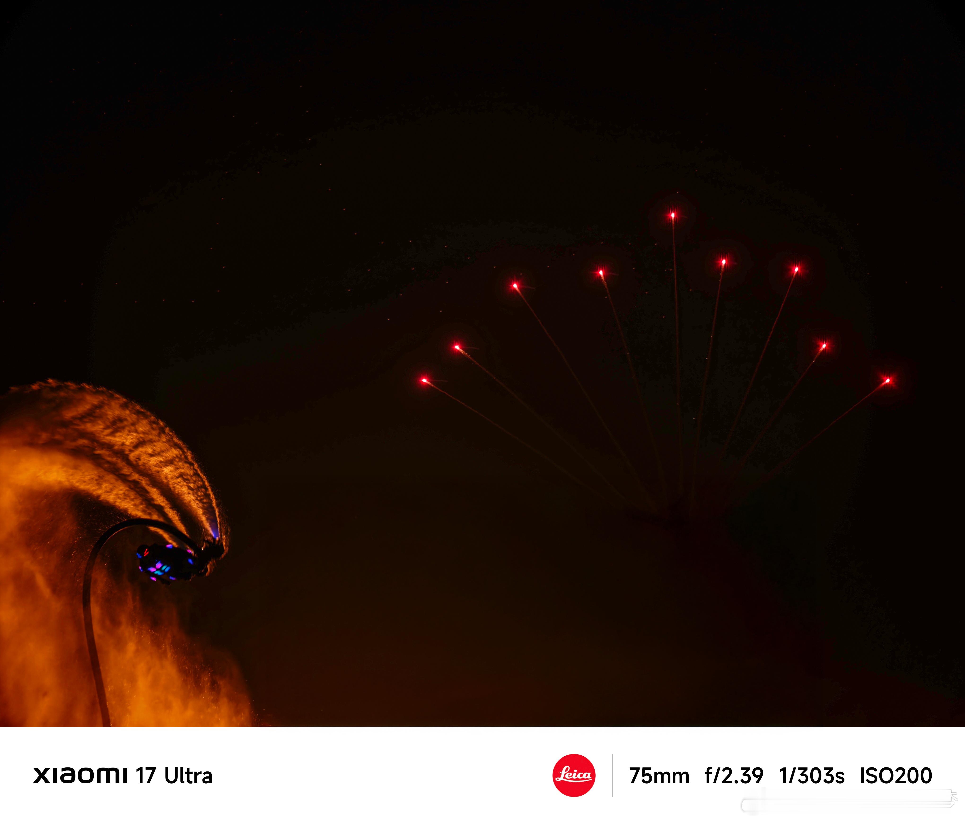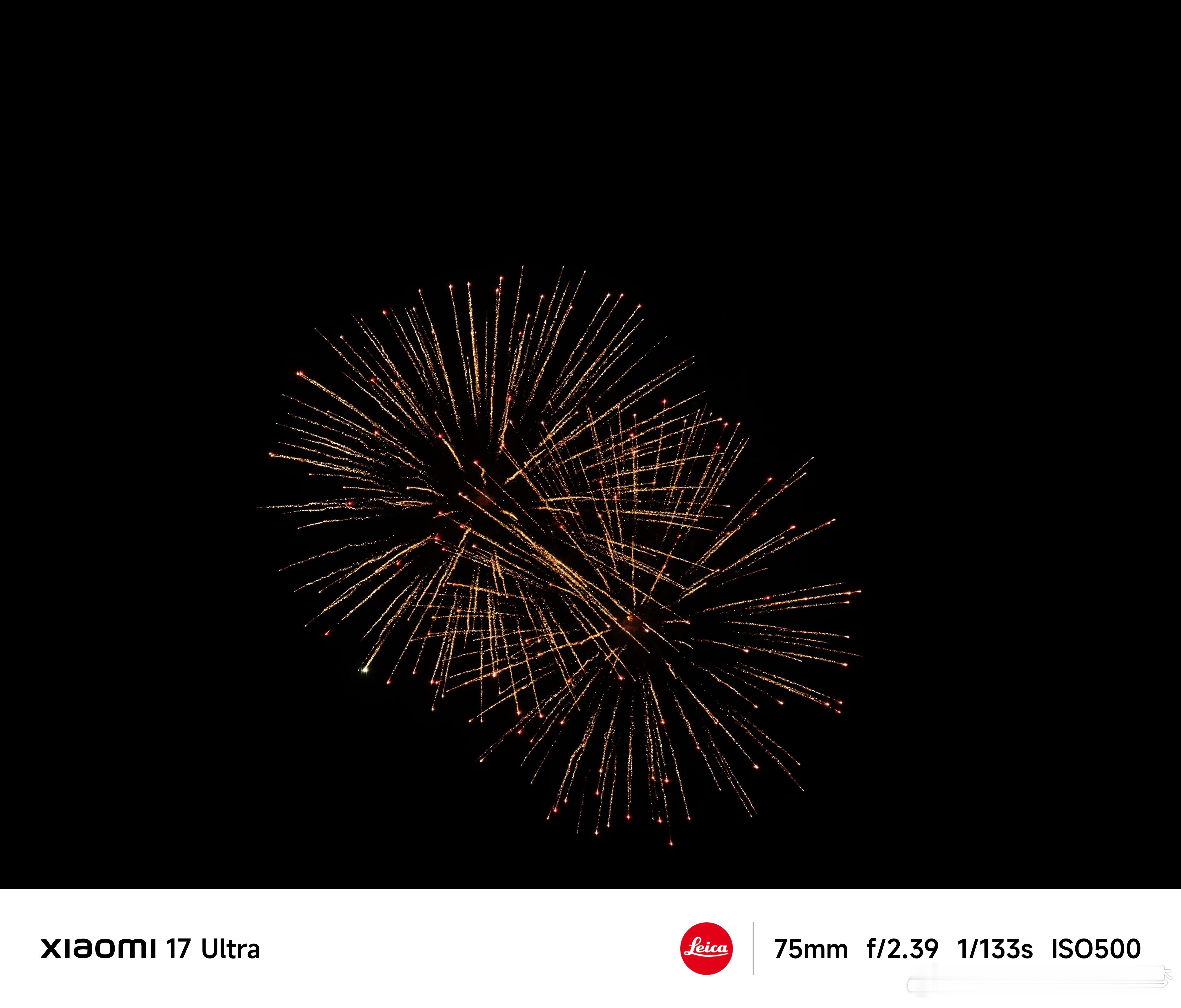 小米17Ultra烟花模式再把我这次用小米17Ultra拍的烟花样片发发,都是直出无任何调整,大家觉得这个效果如何?从单纯摄影层面来讲,拍烟花最大的难点就是很难控制高光和阴影的平衡,需要设置一堆参数,但是小米现在做这个模式就很方便,你直接相机下滑就行。而且除了烟花之外,还有一个火焰模式也特别猛,大家可以看图二 图三,效果真的很赞,高光效果很好。拍摄起来操作很简单,直接狂按就行,出片效果很好,感觉会成会过年神器了~