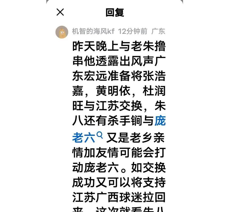 朱芳雨要拿杜润旺+俩小年轻去换江苏的庞峥麟?这算盘打得响,但响得离谱。 宏远缺的是内线大闸,不是后卫。徐杰、胡明轩够用了,再来个15分的庞峥麟,球权怎么分?江苏正拿庞当重建基石,肯帝亚官博刚晒他夏训照,配文“核心成长中”,就差把“不卖”写脸上。 仨换一听着唬人,可杜润旺是空间四号位,张皓嘉黄明依还能刮彩票。拿即战力+潜力去换一个非顶级后卫,宏远图啥?CBA历史上多换一都是周琦王哲林级别,庞峥麟还没到那档。 说白了,这就是自媒体编段子蹭流量。官方没动静,朱芳雨最近只提“内部挖潜”,压根没提交易。看球别听风就是雨,等官宣再激动也不迟。