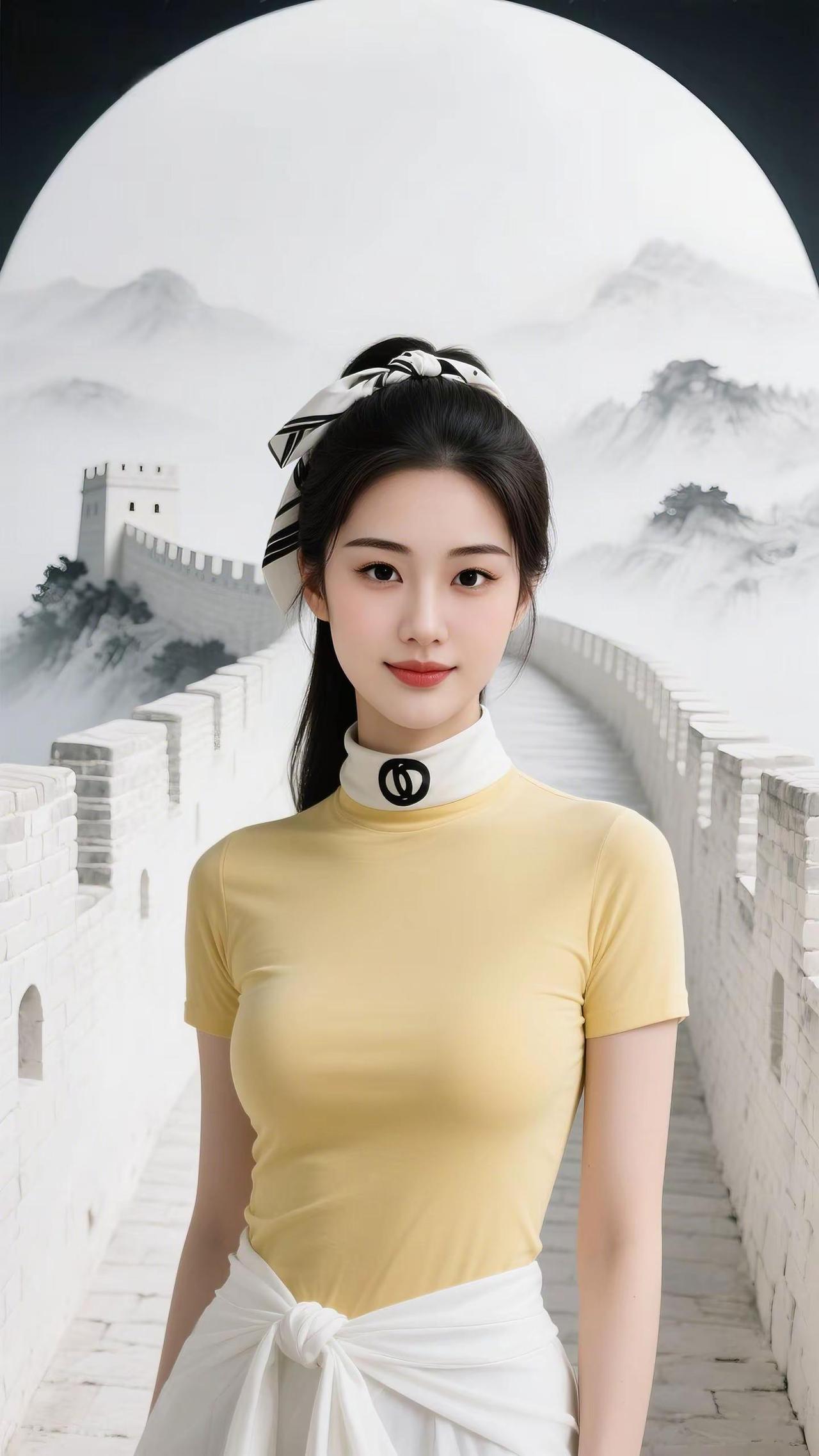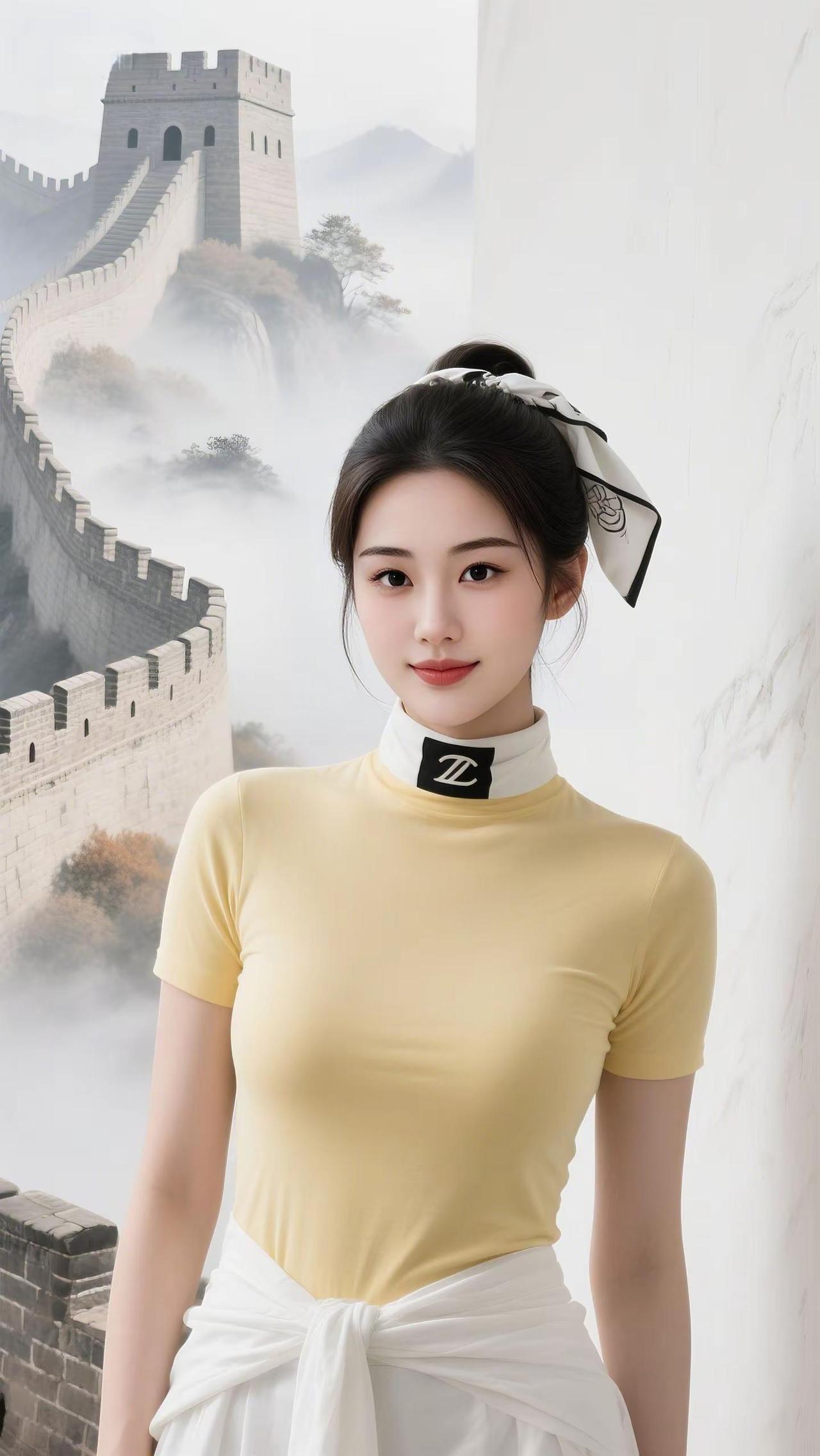 一抹暖黄撞色国风,长城墨韵衬温柔~国风穿搭 新中式美学