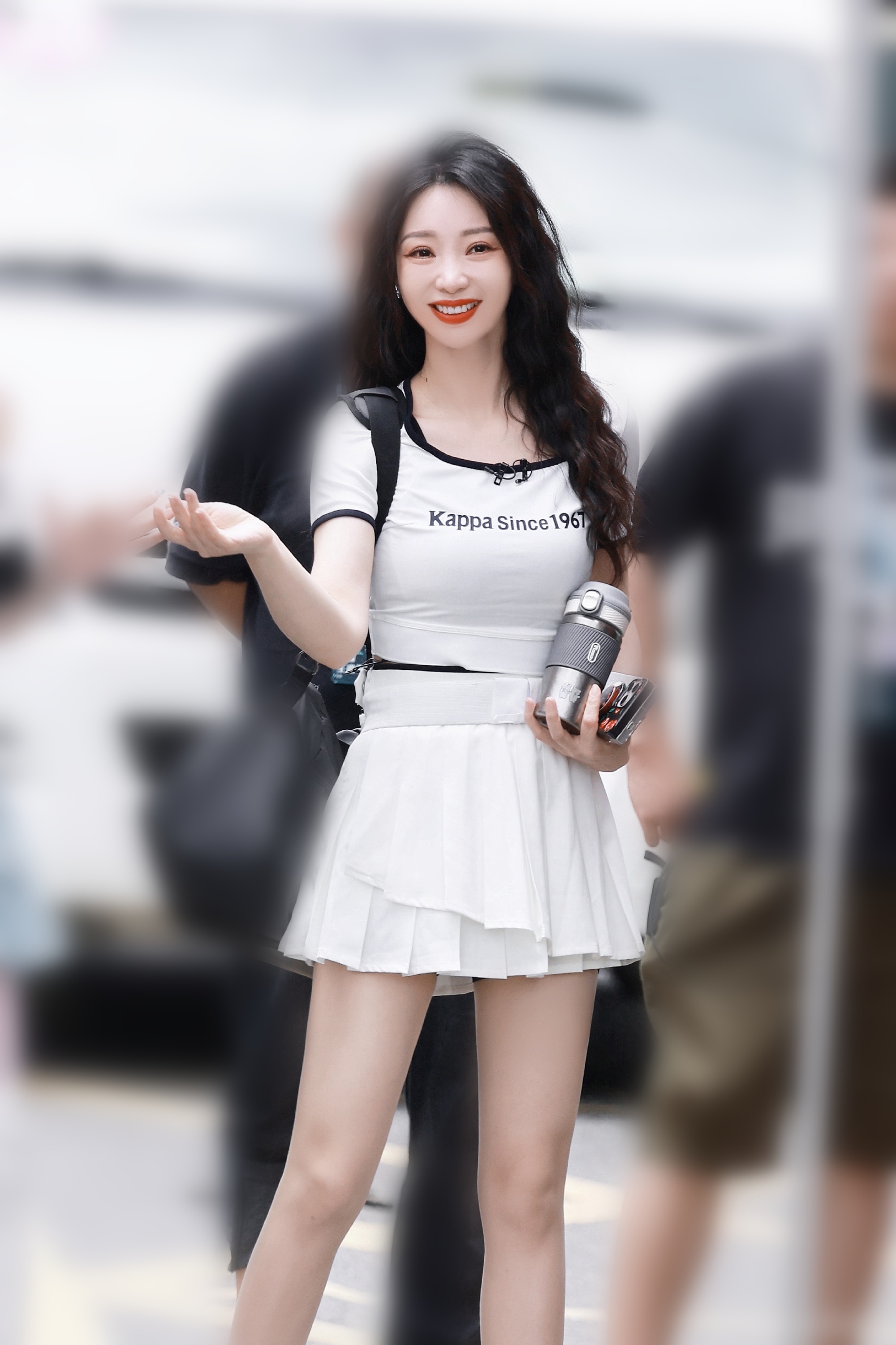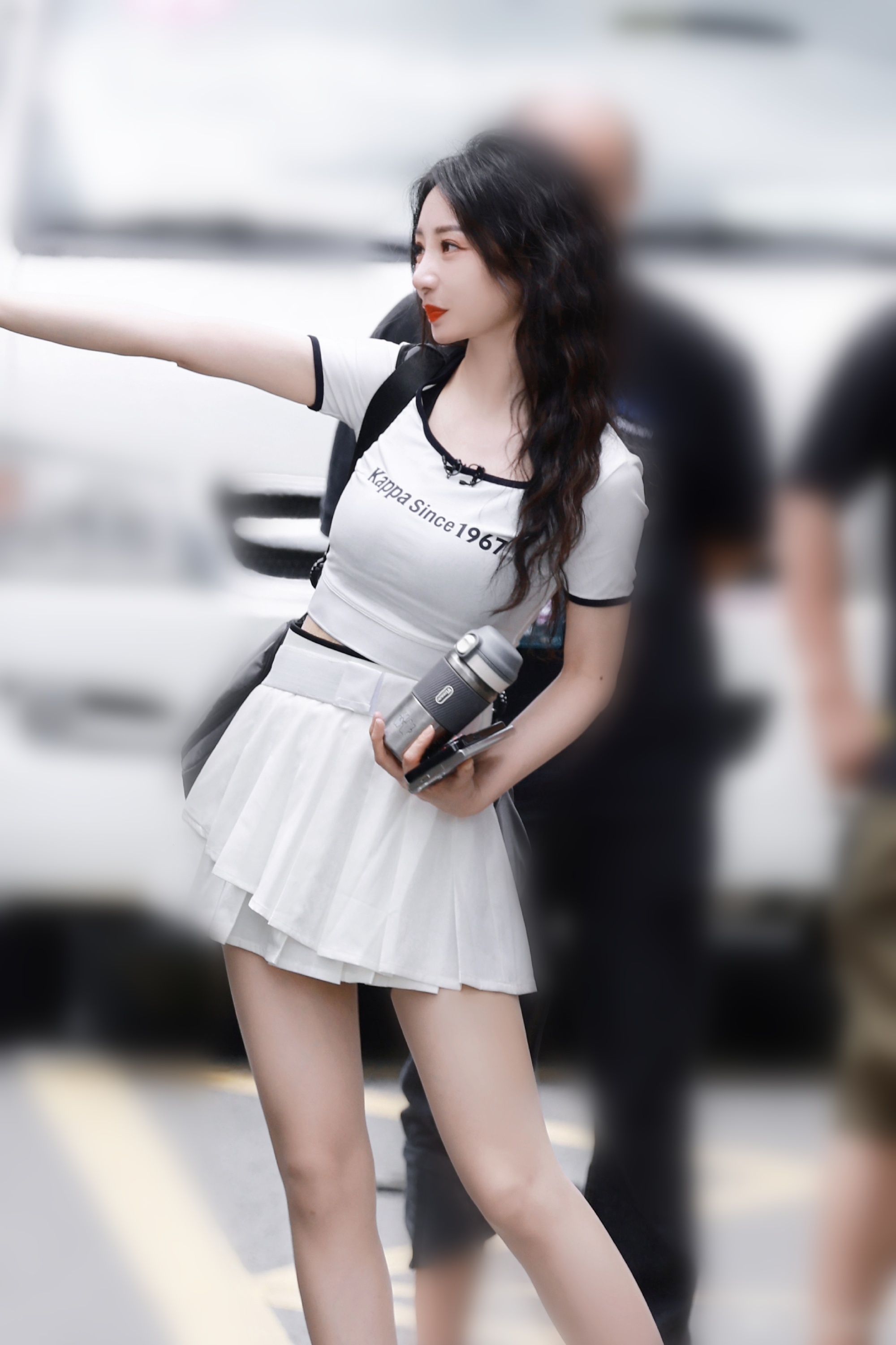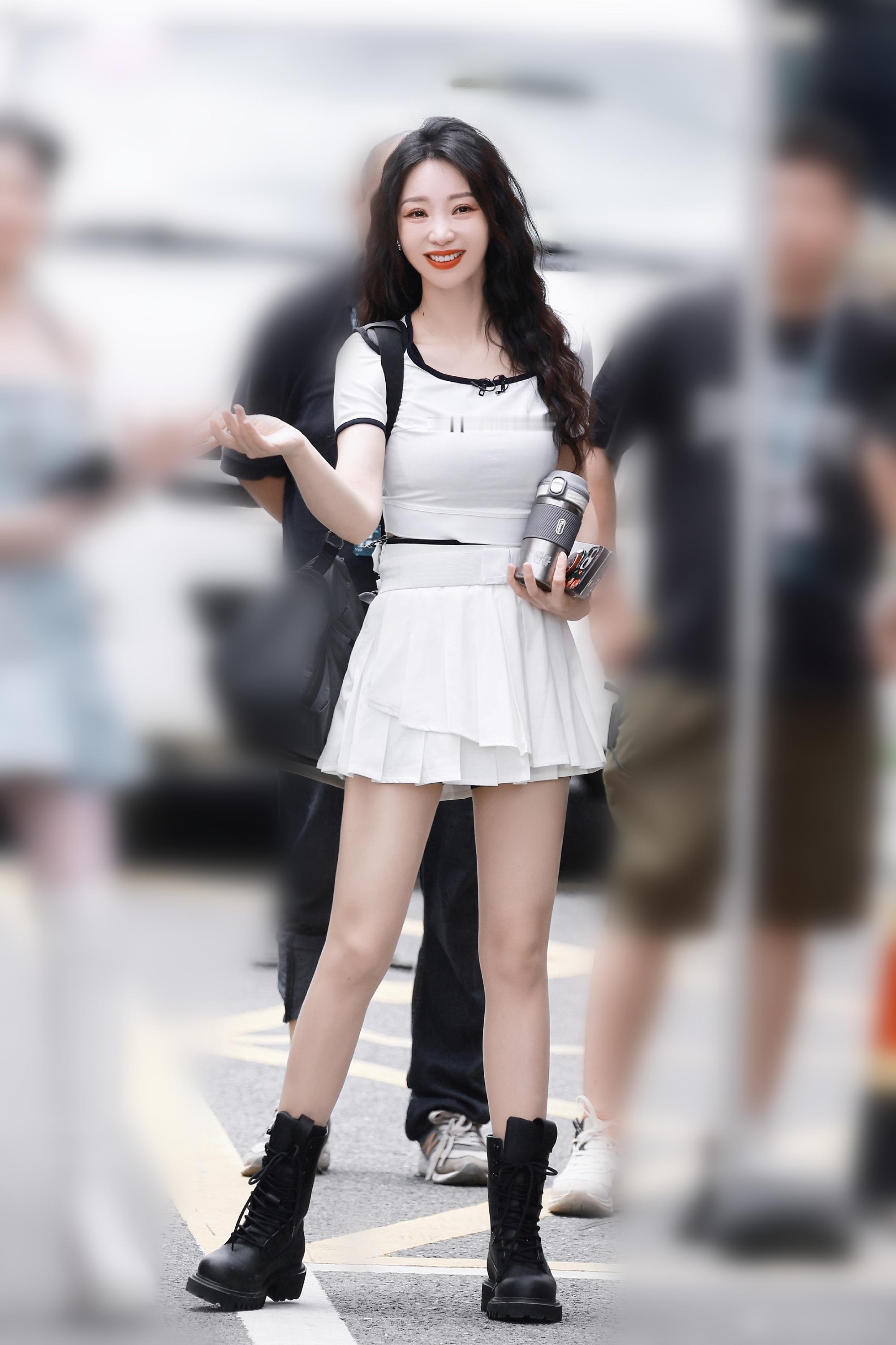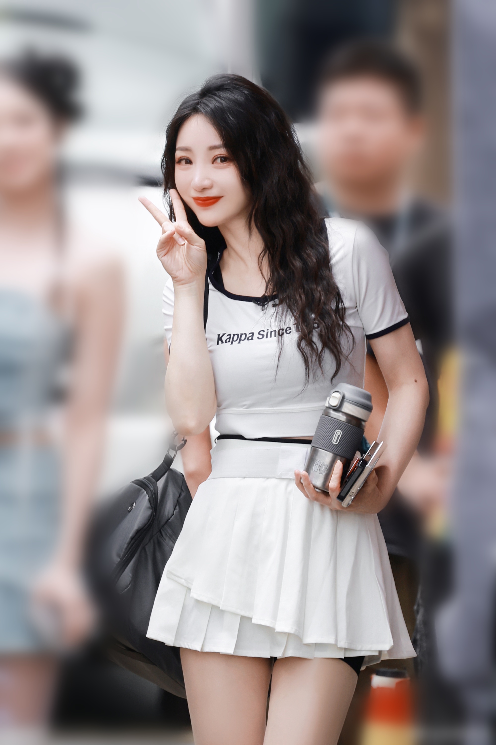 柳岩,白裙子穿搭街头美拍,甜笑可人。柳岩