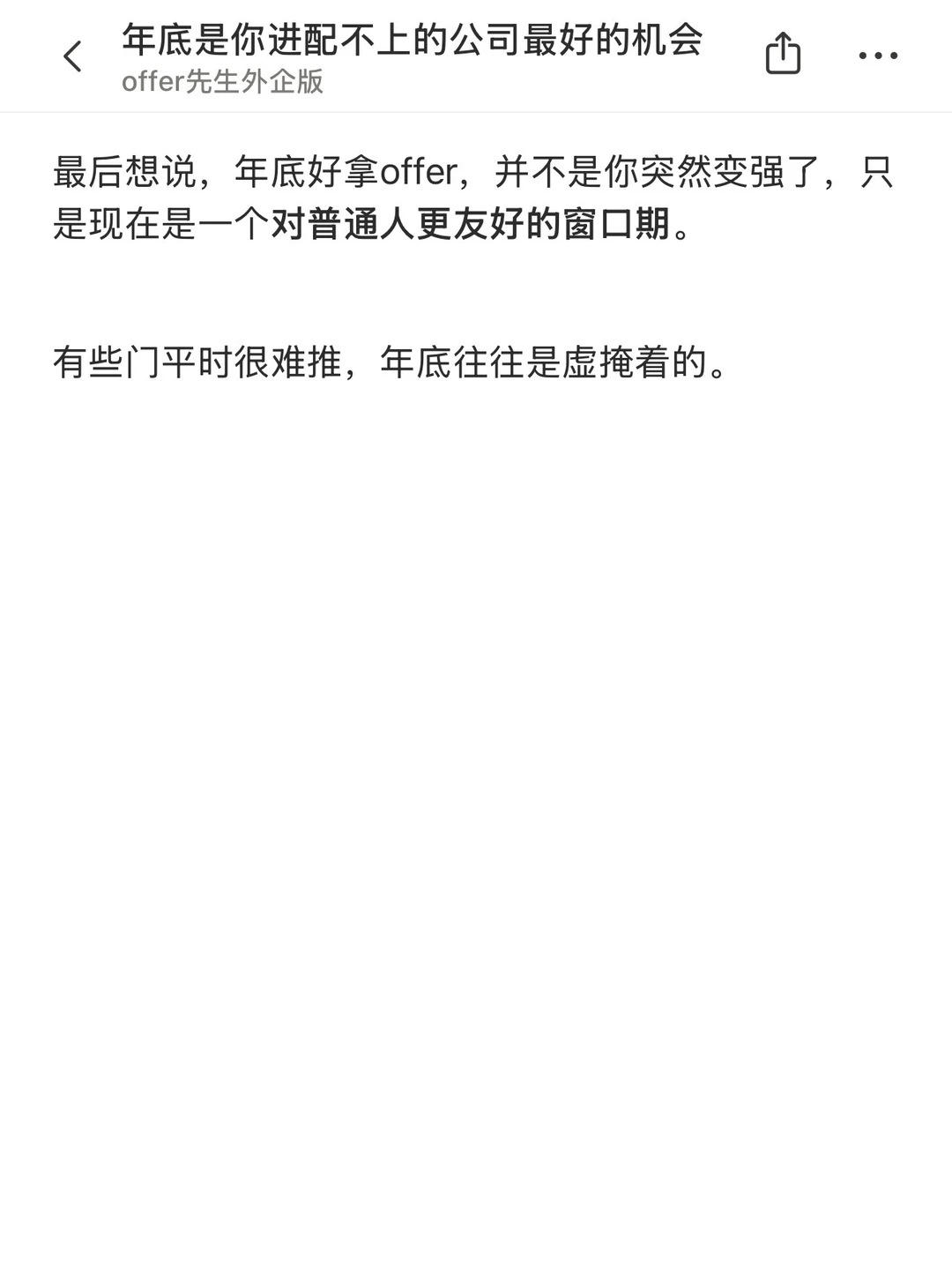 很多人对年底找工作有个固定印象:岗位冻结、求职市场不活跃,要等年后了。 但真正试着在年底找工作会发现,年底反而是一个结构性错位的时间点——公司和求职者的状态不在同一条线上,而这个错位,恰好很适合普通人捡漏。 一个认真分享“找工作”干货的账号。真诚、有料、不说空话,只想用真实经历、具体方法,帮大家少走点弯路