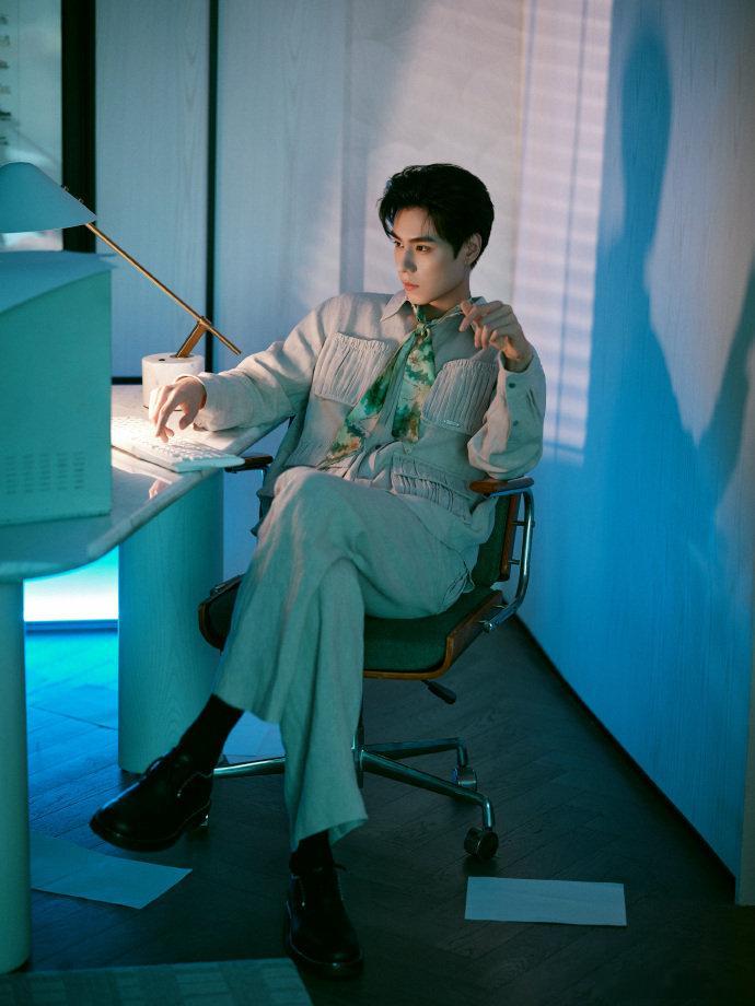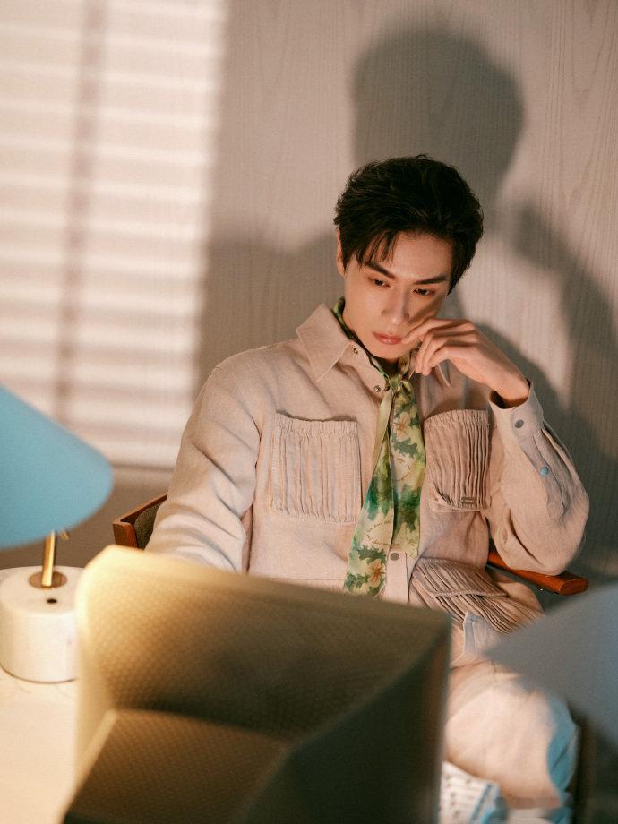 胡一天工装配丝巾胡一天今日造型工装配丝巾,这张脸是真帅啊。胡一天衣服好多口袋