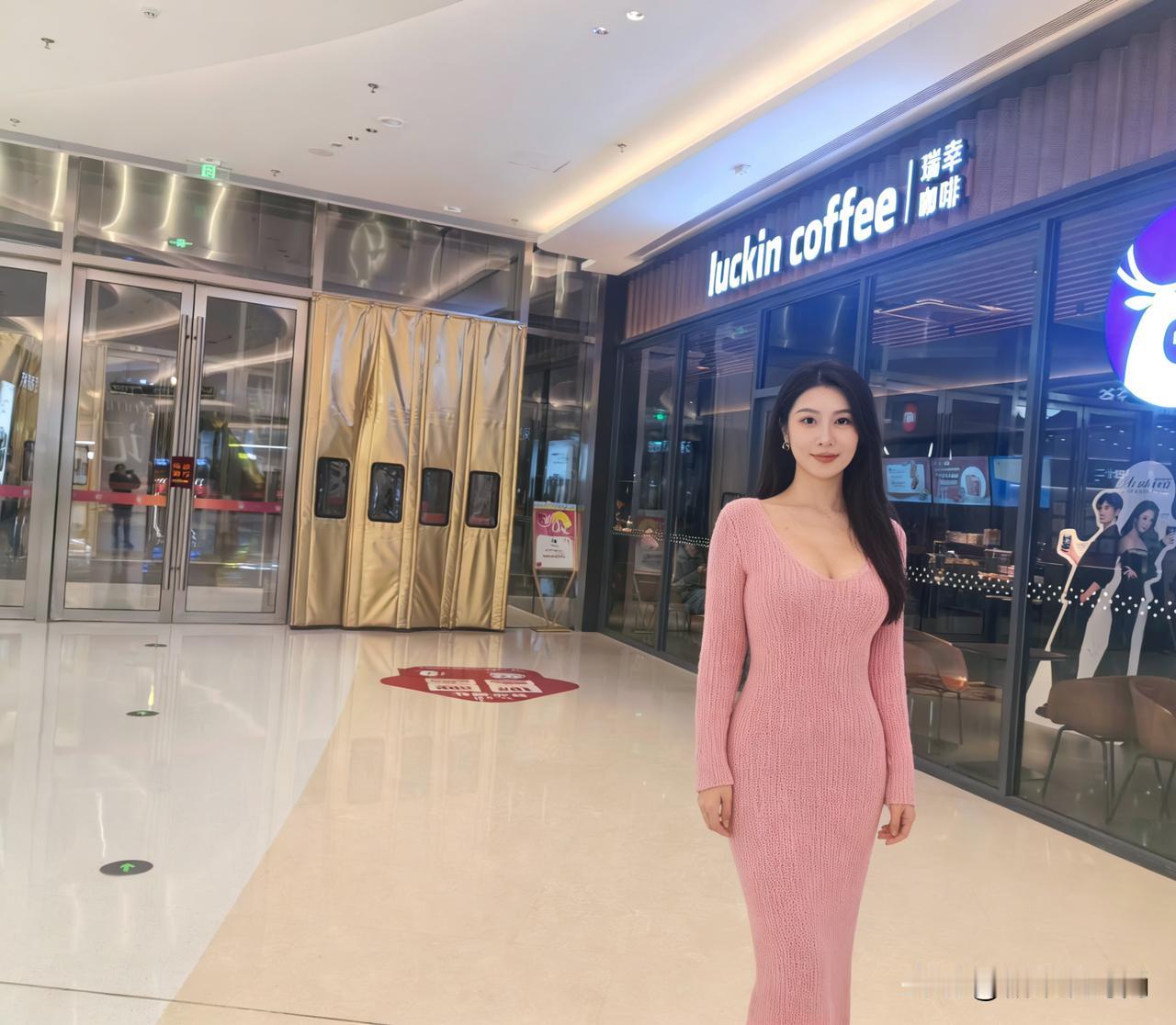 一个人出来吃晚饭啦,这身粉色针织裙,你给我打几分呀?