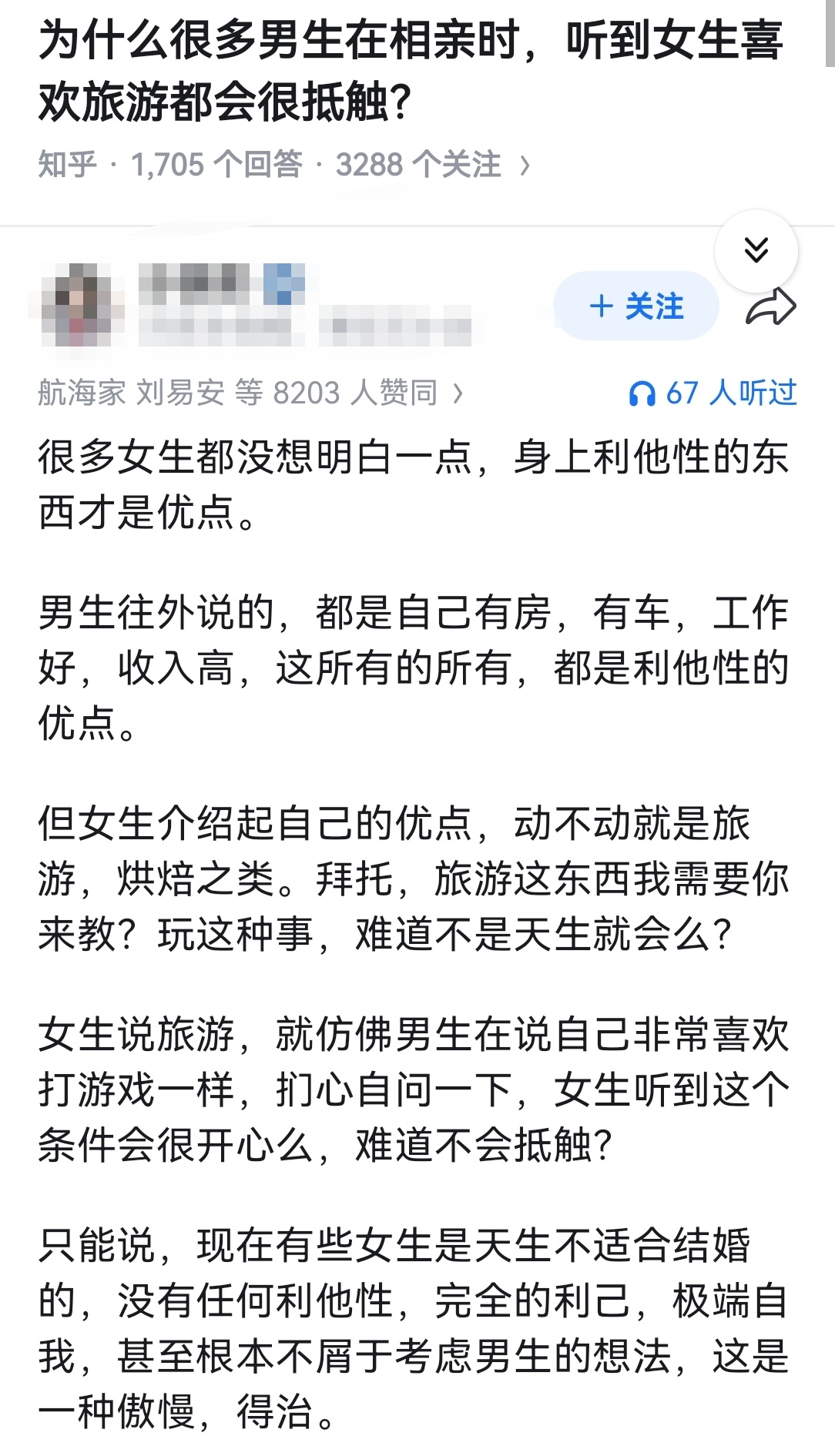为什么很多男生在相亲时,听到女生喜欢旅游都会很抵触?