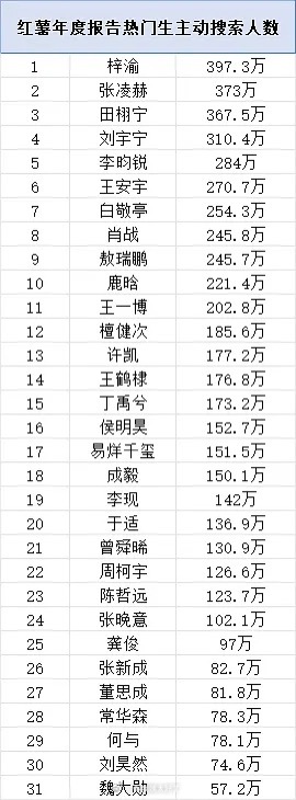 红薯年度报告热门🥜搜索人数TOP3:梓渝、张凌赫、田栩宁符合体感吗?