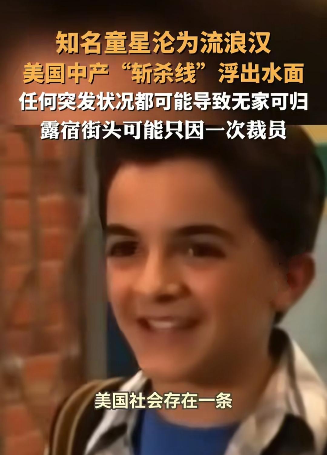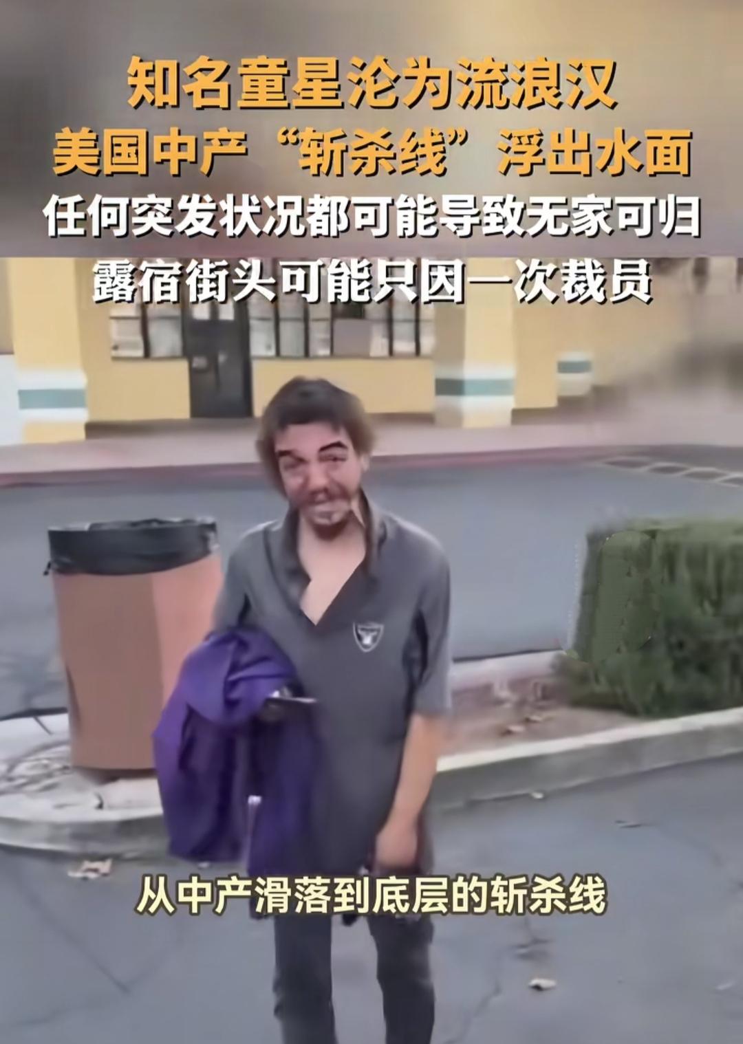 你能想象吗?曾经有过星光熠熠的童星,如今却流落街头成了流浪汉;年薪45万的程序员,一场病就能让他从精英沦为无家可归者。这不是电影剧情,而是美国社会真实的残酷写照。 在这片标榜“机会平等”的土地上,存在着一条隐形的“斩杀线”。很多美国人表面过着中产生活,工资刚到账就被房贷、车贷、账单瓜分干净,财务处于紧绷的平衡状态。可一旦遭遇裁员、生病这类突发状况,就会瞬间踩空,从看似体面的中产直接坠入流浪深渊。 更让人揪心的是,美国社会缺乏给底层的缓冲空间。社会救助仅能维持最低生存,却没有真正帮人摆脱贫困的路径。那些曾经的白领、小企业主,在“斩杀线”的冲击下,被一步步推向深渊,无路可退。 一个社会的文明程度,不仅要看成功者站得多高,更要看失败者的底线有多低。美国“斩杀线”的背后,是无数家庭的破碎和个体的绝望,这值得我们深思。