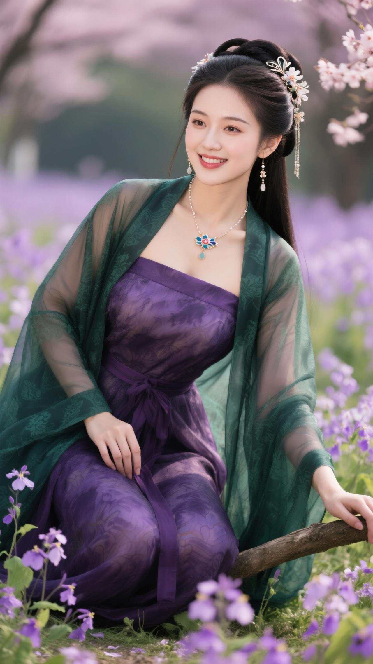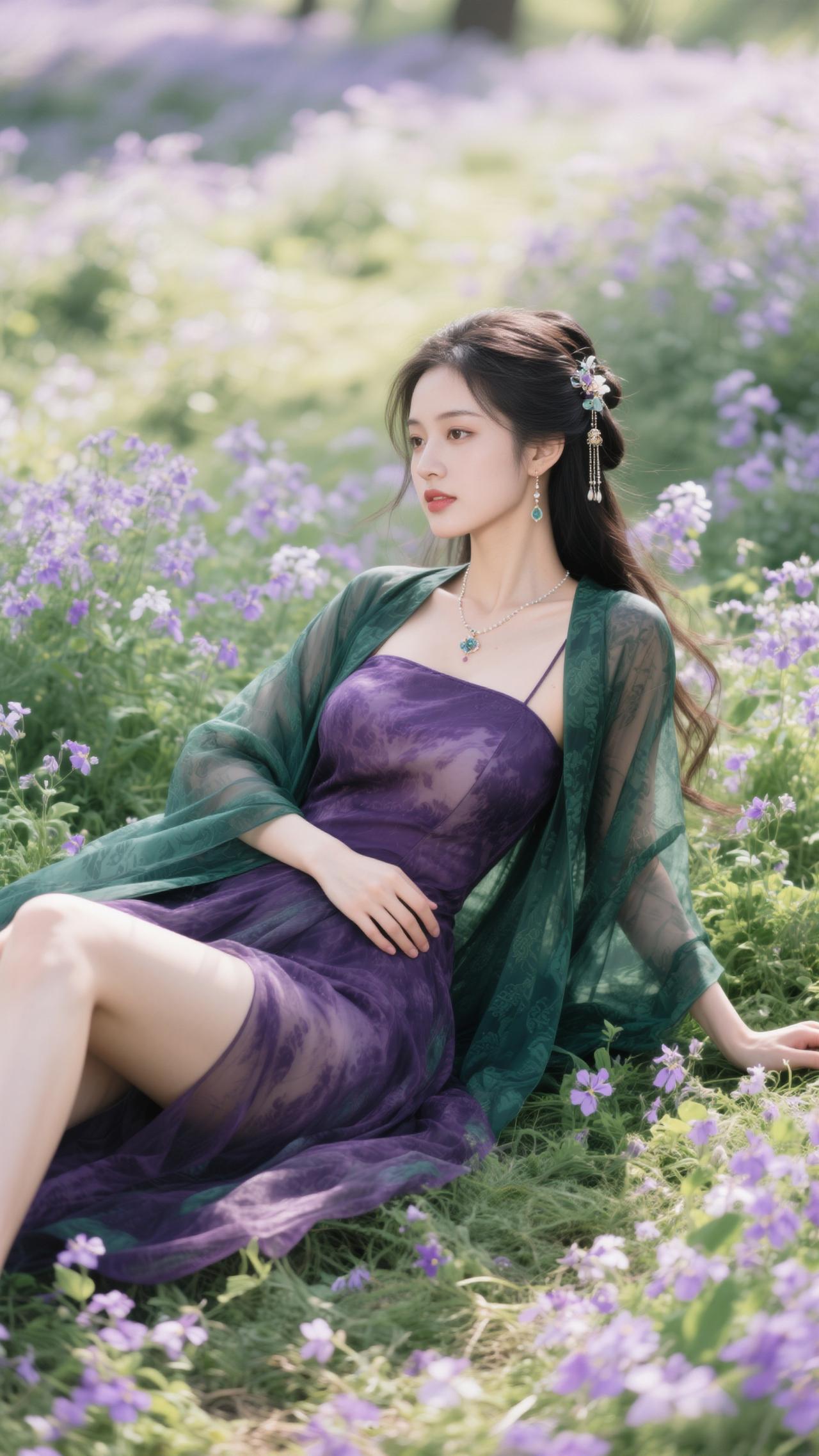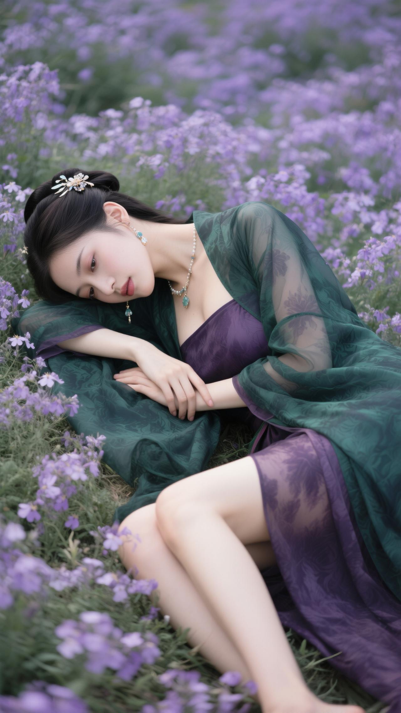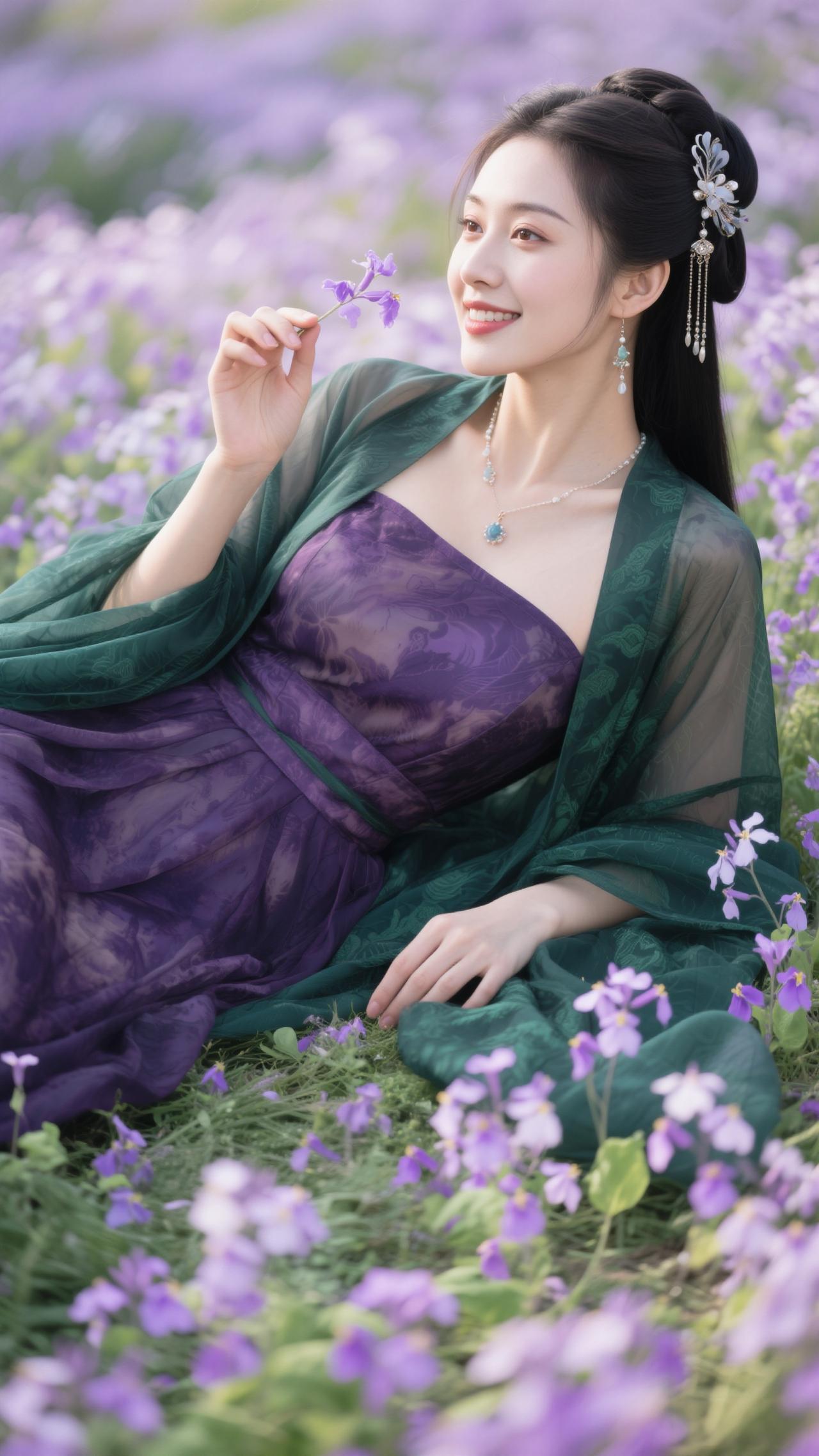 花间闲卧凝眸处,风软拂罗裙。汉服古风 国风古韵 原创作品 古装 花海拍照 《蝶恋花·紫英凝袂》 紫袂青纱笼紫陌,香绕芳襟,笑倚花间陌。 簪底珠星凝晚色,眉间一点春山碧。 风软吹花飞紫雪,漫卷罗衣,不与春愁别。 一晌清欢谁与共,紫霞深处寻明月。