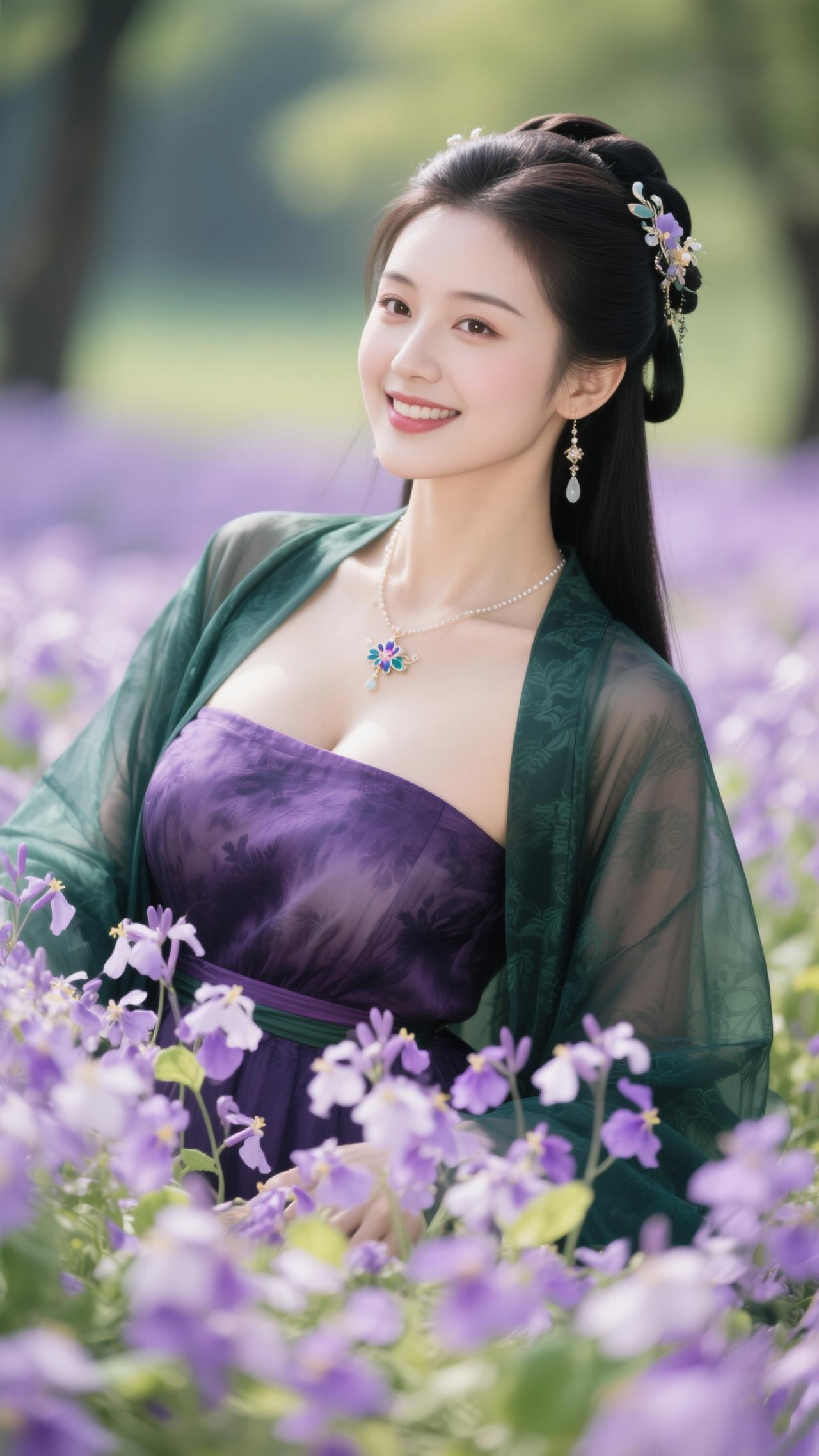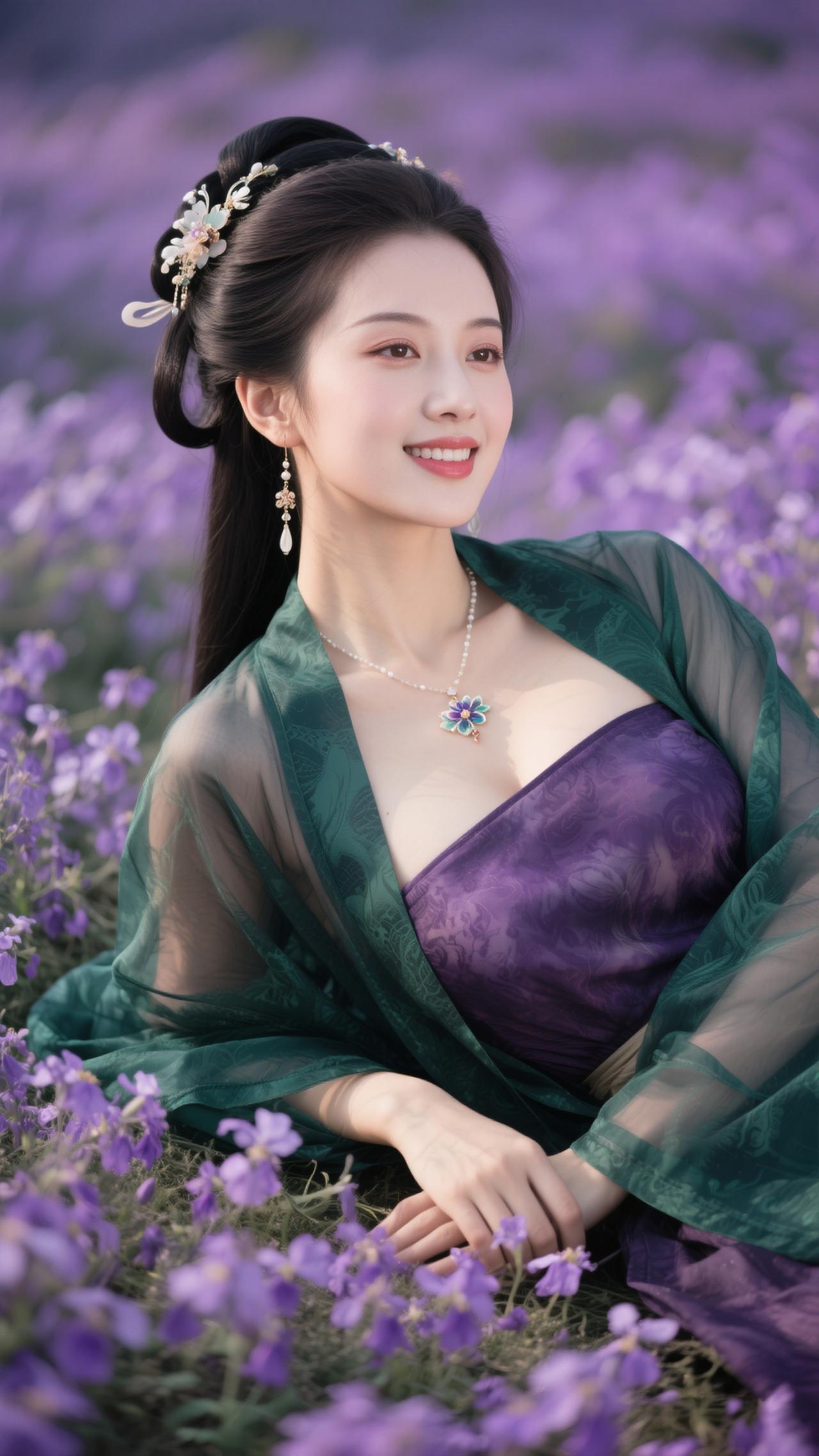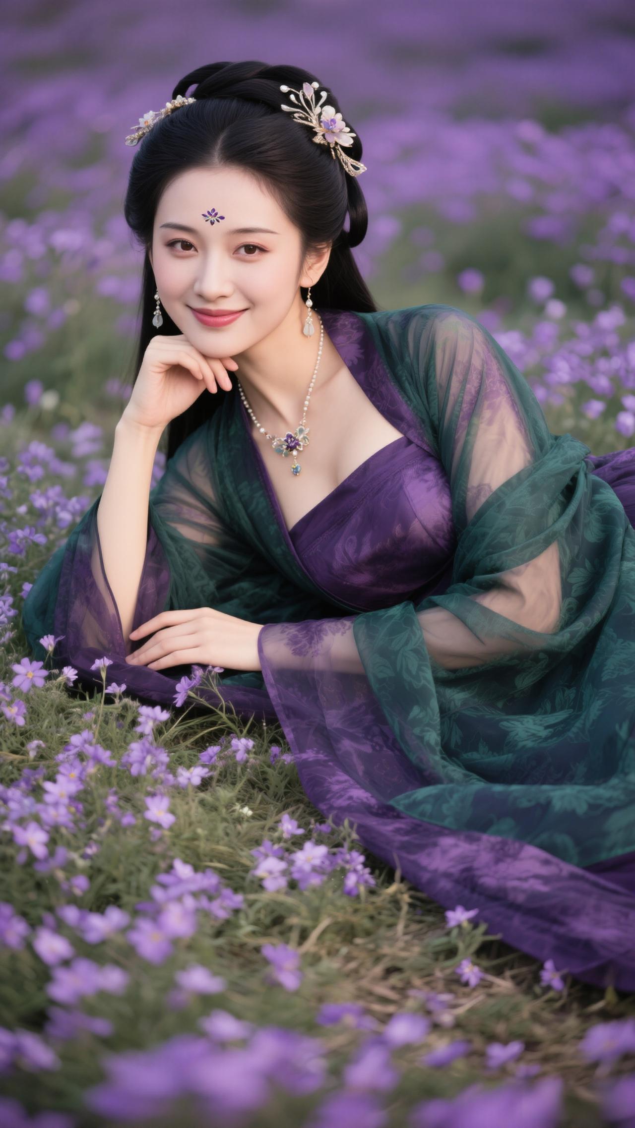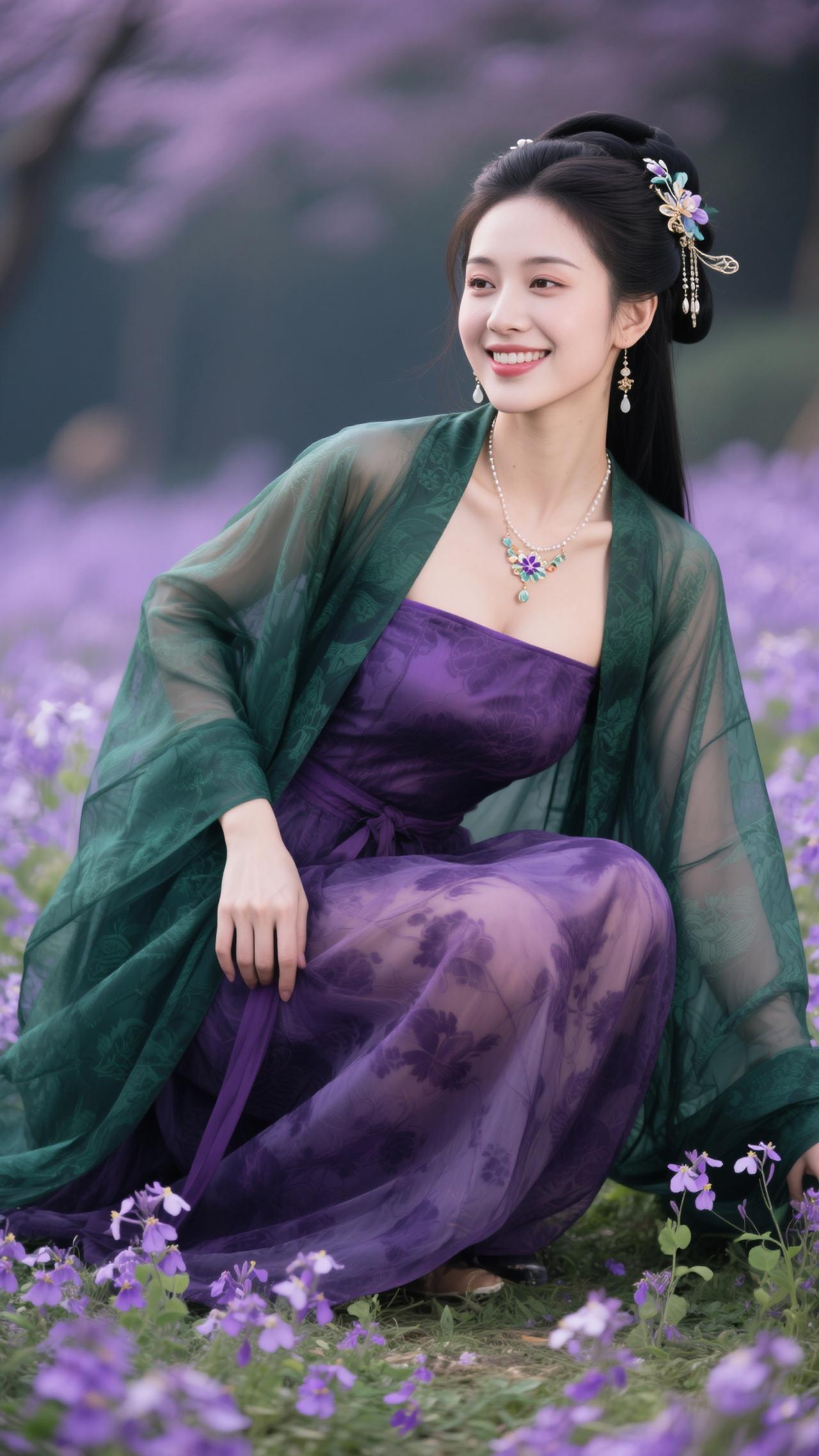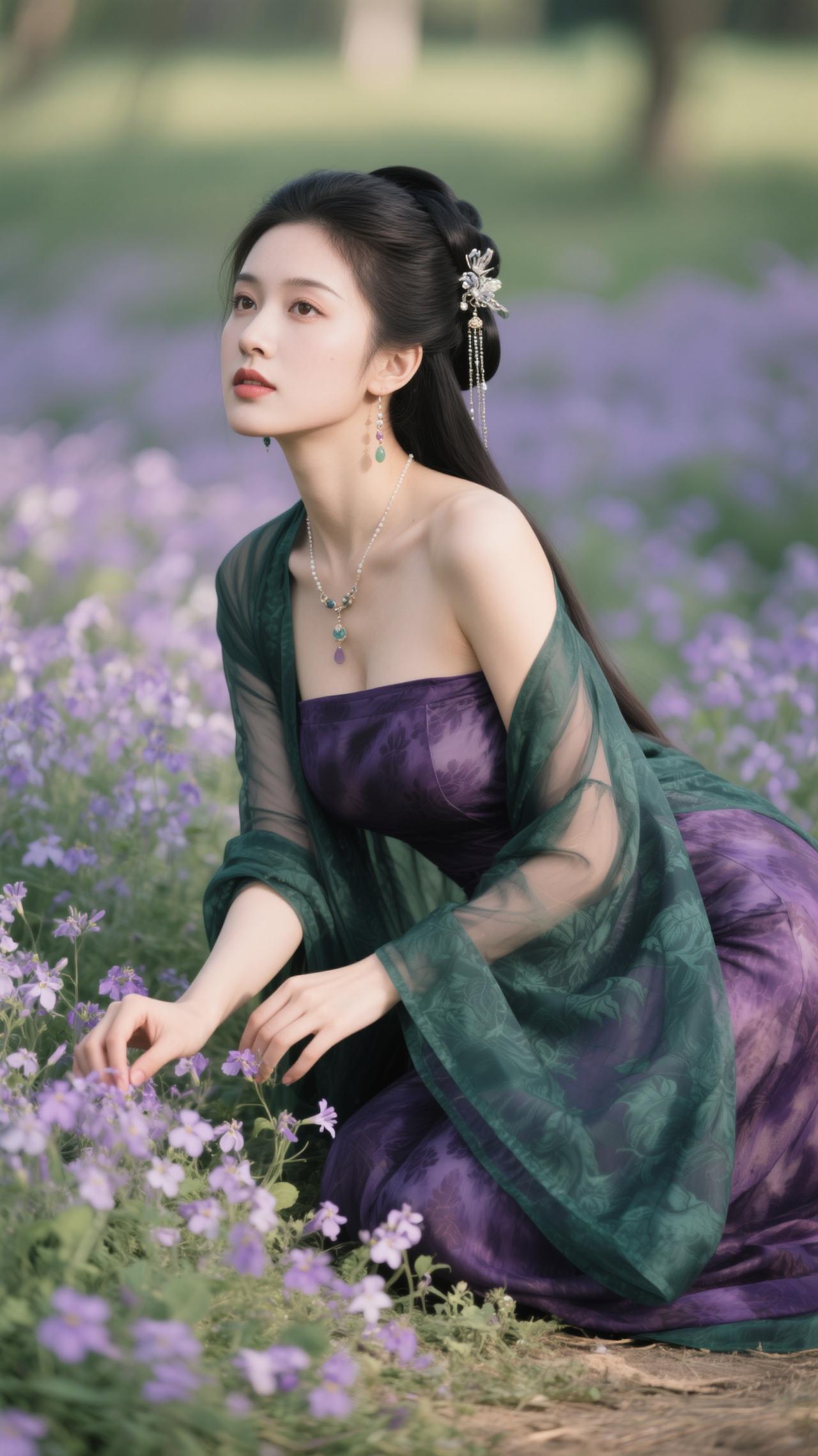 花间闲卧凝眸处,风软拂罗裙。汉服古风 国风古韵 原创作品 古装 花海拍照 《蝶恋花·紫英凝袂》 紫袂青纱笼紫陌,香绕芳襟,笑倚花间陌。 簪底珠星凝晚色,眉间一点春山碧。 风软吹花飞紫雪,漫卷罗衣,不与春愁别。 一晌清欢谁与共,紫霞深处寻明月。