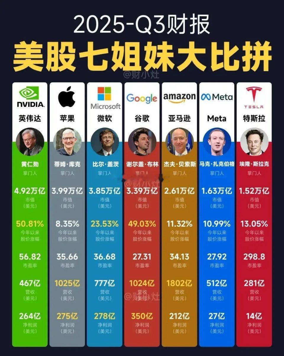盘点下2025年,美股七姐妹谷歌年初价格142 现在价格315 上涨122%英伟达年初价格86现在价格189 上涨122%特斯拉年初价格214现在价格482 上涨126%Meta年初价格480现在价格664 上涨38%微软年初价格344现在价格486 上涨41%苹果年初价格169现在价格272 上涨61%亚马逊年初价格161现在价格232 上涨44%