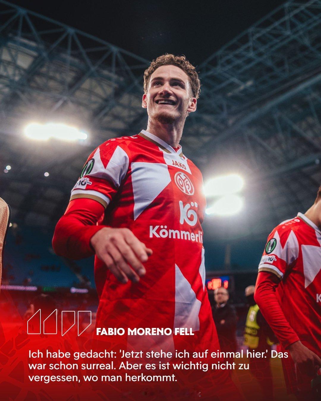 【神奇前锋的神奇经历】26岁西班牙业余球员,法比奥-莫雷诺-费尔,之前两个赛季,在德国第6级别联赛踢球。2023-24赛季,30场联赛打进30球,2024-25赛季,32场联赛打进53球,帮助球队升上第5级别联赛。2025年夏天,费尔连跳四级,登陆德甲联赛,以自由员身份加盟美因茨,正式成为职业球员。本赛季,他更多是在美因茨2队踢球。想不到的是,来到12月份,他被上调到美因茨一线队,出战了1场德甲联赛和2场欧协联比赛。半年内,他就实现了从业余球员到欧战的童话式飞跃,也许这就是足球的奇迹。