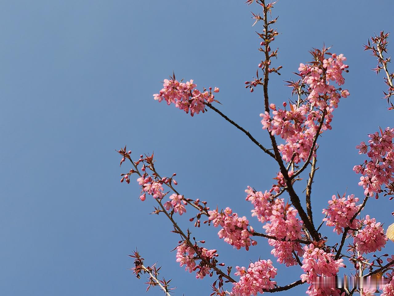 冬樱花开喜迎新年! 春城阳光灿烂, 天空湛蓝, 冬樱花开正艳! 愿即将到来的2026如樱花般绚烂, 愿你我在新的一年里都快乐平安!昆明冬樱 南方冬樱花 冬樱 冬樱拍照 初冬赏樱 分享你的旅行摄影佳作 手机摄影 随手拍