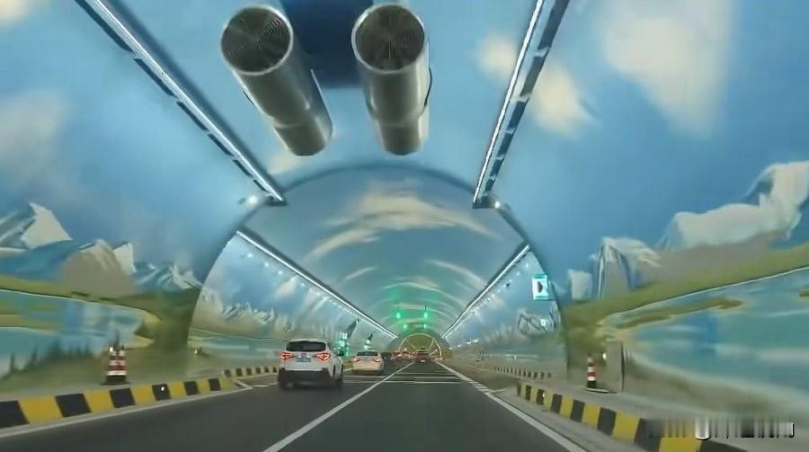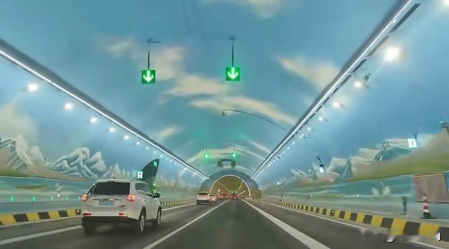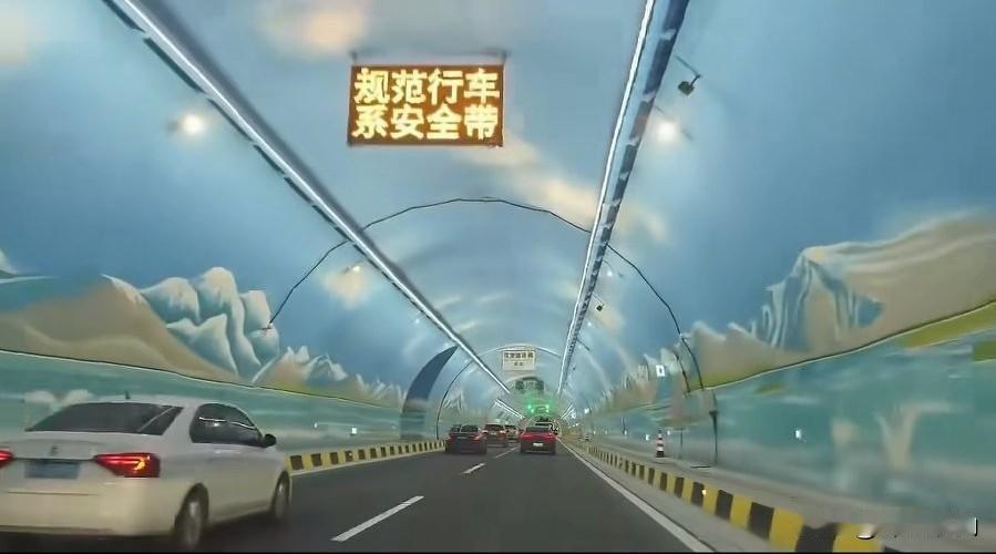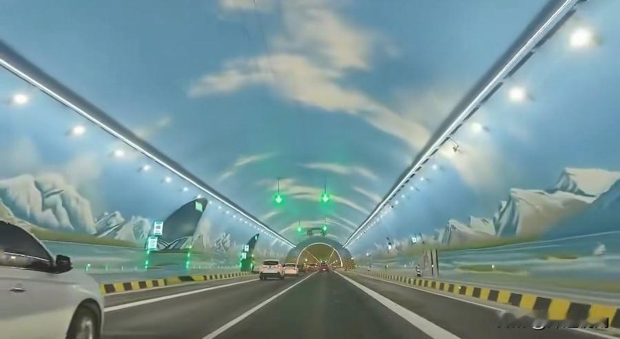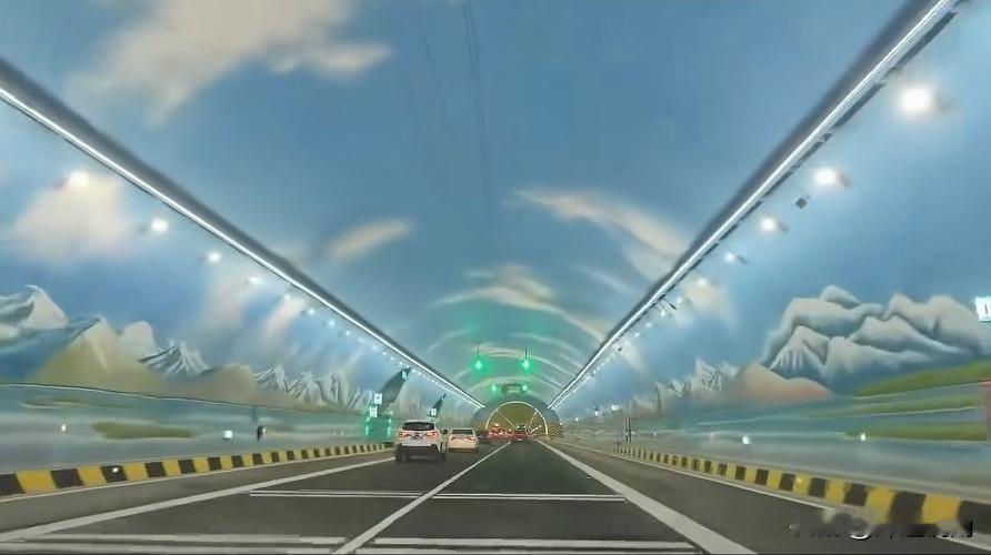 谁能想到在22公里长的隧道里,还能看到蓝天白云和雪山盛景?刚刷到天山胜利隧道的内部实景视频,直接被这设计惊艳到了! 22公里堪称世界级工程,隧道里不仅有双向车道畅通行驶,顶部还做了蓝天白云的彩绘设计,两侧搭配雪山图案的装饰,瞬间打破了传统隧道的压抑感,视觉效果拉满。 作为全球最长的高速公路隧道,天山胜利隧道全长22公里,建设过程攻克了高寒、高海拔、地质复杂等诸多难题。从视频里能看到,隧道内照明、交通指示系统一应俱全,绿色通行信号灯清晰醒目,车辆行驶秩序井然,足见工程的精细化程度。 G0711乌尉高速全线通车,这是中国人第一次用高速公路硬生生打通天山,把原来翻山越岭的7小时,压缩到3.5小时;把曾经生死考验的盘山路,变成20分钟天山胜利隧道穿隧而过的坦途! 这条隧道的通车,不仅大幅缩短了翻越天山的时间,更是我国基建实力的又一硬核体现。在这样的超级工程面前,真的忍不住为中国基建点赞!