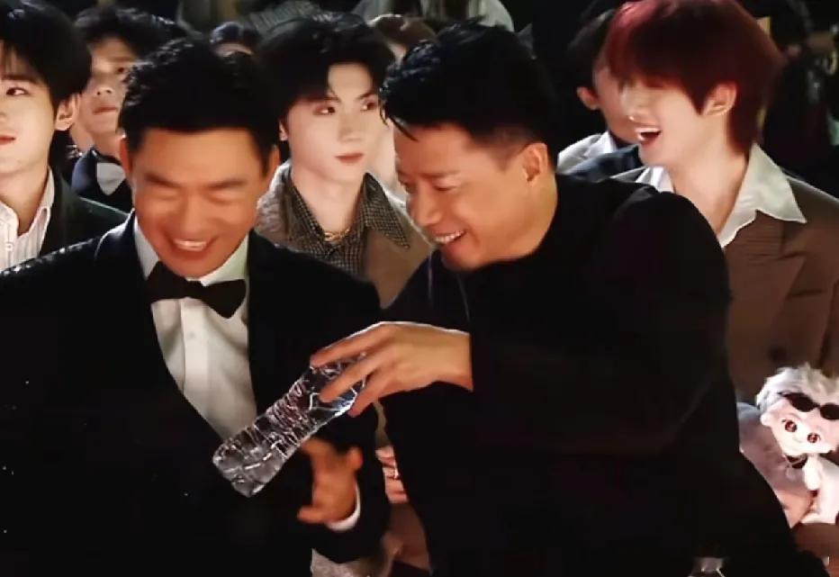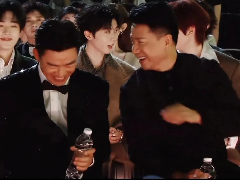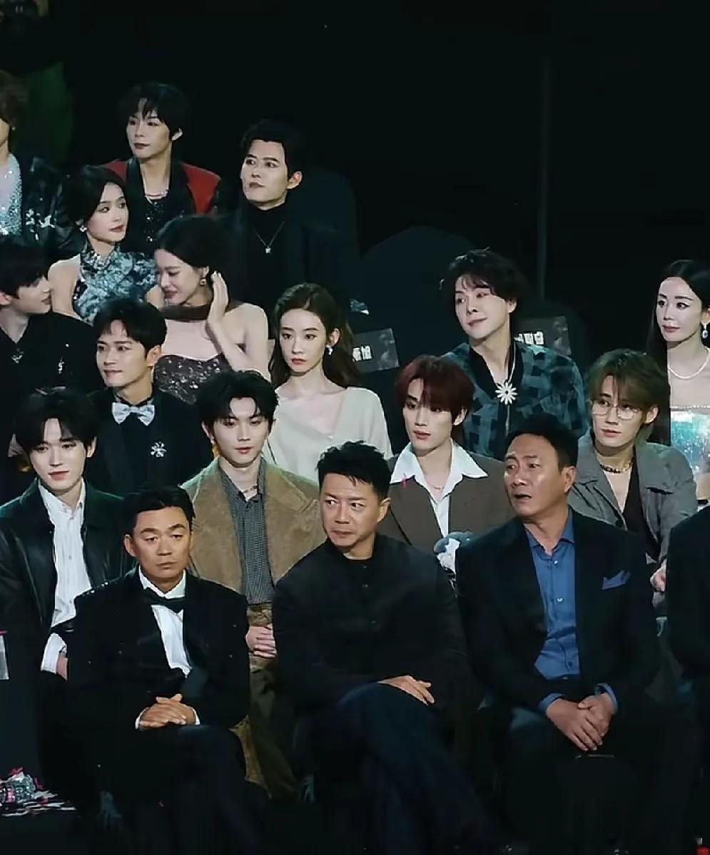 第一排的王宝强、段奕宏和胡军,跟后排的小朋友们仿佛不在一个“图层”。三位大哥肤色透着原生态的质感,看着就像洗完脸抹点大宝就来的随性,却自带别样魅力——爷们气、霸气感混着松弛感,格外抓人。后排小朋友们个个唇红齿白,男生清一色的厚刘海,一眼望去难分彼此,反倒衬得前排几位“叔”更有辨识度,是独一份的帅。