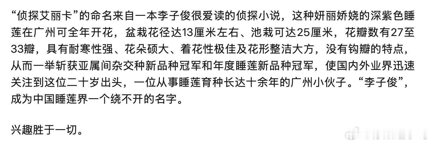 17岁少年在家种出冠军睡莲不怕冷也不怕热的花 17岁就育出世界级睡莲也太牛了,冷热都能适应,不用费心伺候,颜值和实力双在线,养花人真的很难不心动~