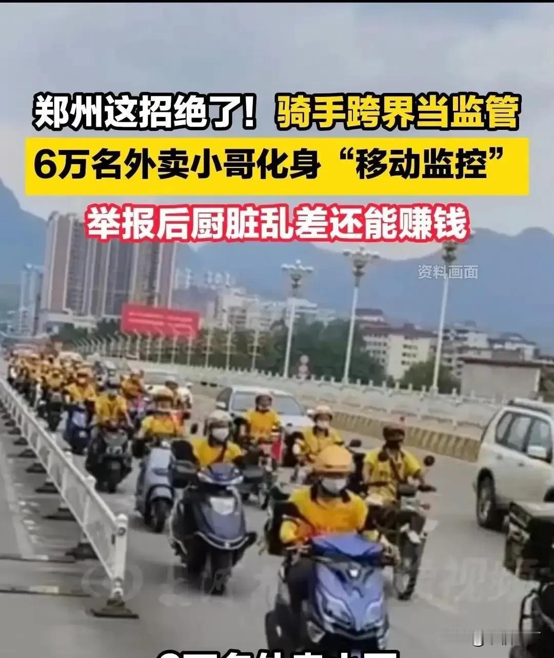 6万外卖小哥变身“移动监管员”!郑州市直接让外卖小哥变身移动监控员,竟然还跨界干起了市场监管的活儿! 据豫视频媒体报道,12月26日郑州市场监管局上线了云课堂,1400名骑手党员率先带头加入。 你以为这只是简单的“兼职加码”?错!这波操作精准踩中了城市治理的“痛点靶心”。外卖小哥是谁?是每天穿梭在大街小巷的“城市毛细血管”,是能精准抵达每一家餐馆后厨、每一个社区角落的“移动探头”。他们见过早餐店凌晨四点的忙碌,也清楚夜宵摊深夜的猫腻,那些监管人员难以触及的隐蔽角落,正是骑手们的日常工作场景。 有人质疑:“骑手们自己都忙得脚不沾地,哪有时间管别人的事?”但郑州的做法恰恰洞悉了人性——用共情换参与,用价值换责任。云课堂里不仅有市场监管的培训课程,更有专属的权益保障解读,骑手们在监督商家的同时,也能为自己的劳动权益发声。1400名党员骑手的率先垂范,更是给这场跨界合作注入了“红色引擎”,他们用行动证明:外卖箱里装的不只是餐品,更能承载起城市治理的社会责任。 当一名骑手在取餐时,发现餐馆后厨卫生不达标,只需随手拍张照片上传平台,就能触发监管部门的快速响应。这种“随手监督”的模式,不仅大大降低了监管成本,更让每一位普通劳动者都感受到了“被需要的价值”。网友们炸开了锅:“这波操作太绝了!以后点外卖更放心了!”“建议全国推广,让城市治理多些‘烟火气’的智慧!” 这次,郑州的“创新”或许正是对传统监管模式的一次大胆试水。这样的尝试,至少说明了一个事实:城市管理需要创新,更需要信任与合作。我们要相信,这些“奔波在街头的身影”,不仅仅是送餐的快递员,更可能是城市最温暖的“守护者”。 或许,未来的城市管理,不再是冷冰冰的“指令与控制”,而是每个人都能成为城市的“守护者”。正如郑州这次的尝试,它让我们看到:在变革的浪潮中,积极的创新与责任感,才是推动社会前行的最大动力。希望更多的城市能借鉴这种“跨界融合”的思路,让我们的生活变得更加安全、更加温暖,也更加有希望。 你怎么看? 郑州这步棋,走的不是“强制摊派”,而是“顺势而为”。它让我们看到,城市治理从来不是某个部门的独角戏,而是每一个生活在这座城市里的人,共同参与的大合唱。而6万名外卖小哥的转身,正是这场合唱中最动人的旋律! MCN双量进阶计划 市场监管