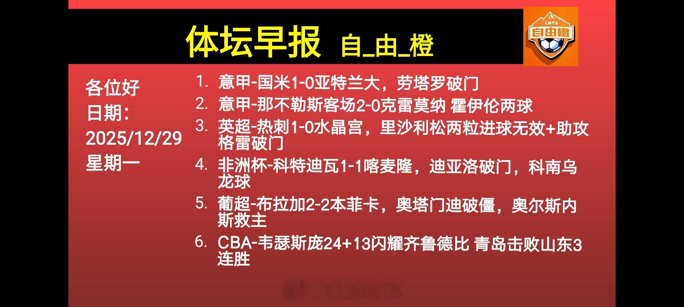 🌐《自由橙足球早报》 12.28 周日➭利物浦2-1狼队,维尔茨首球,赫拉芬贝