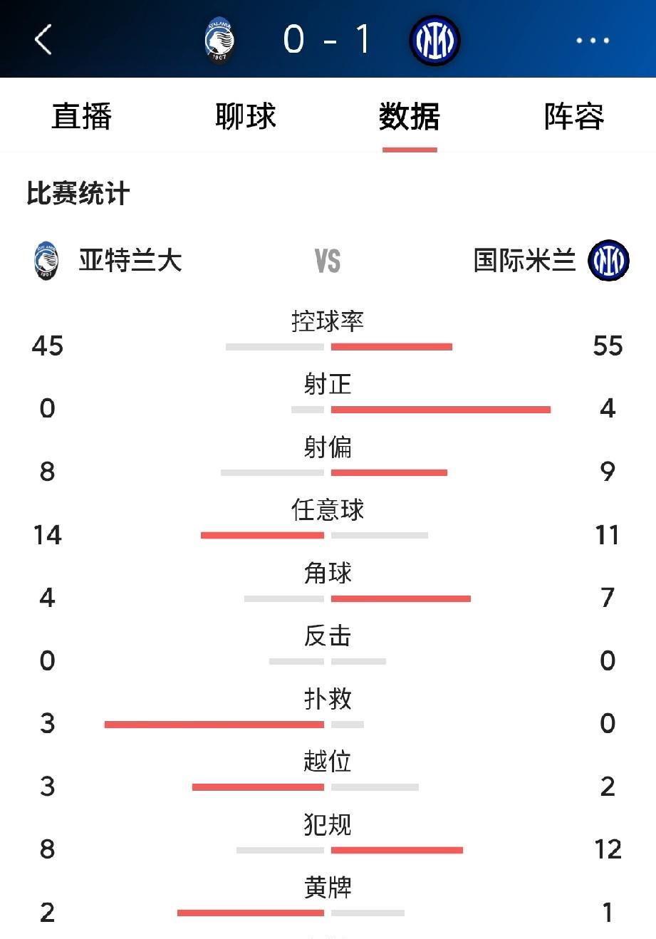 客场1-0亚特兰大,最小的比分胜利,帮助国米继续占居积分榜首位。