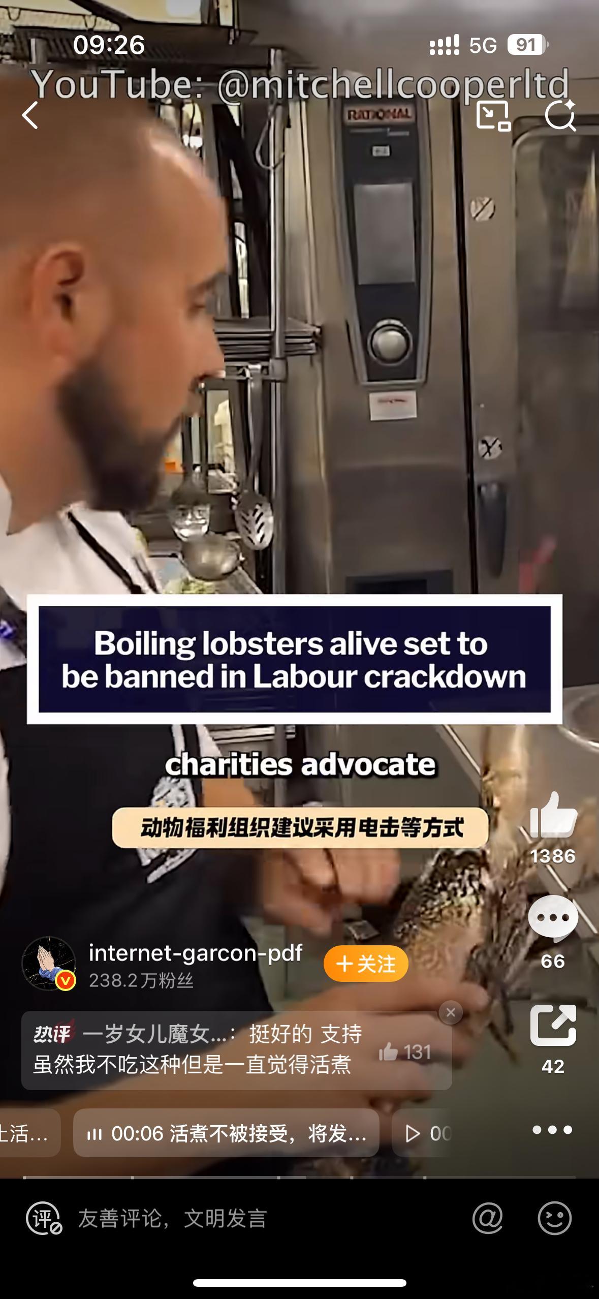英国将禁止活煮龙虾不让活煮,建议电晕了再煮……实在怜惜可以不吃的,列为保护动物吧。