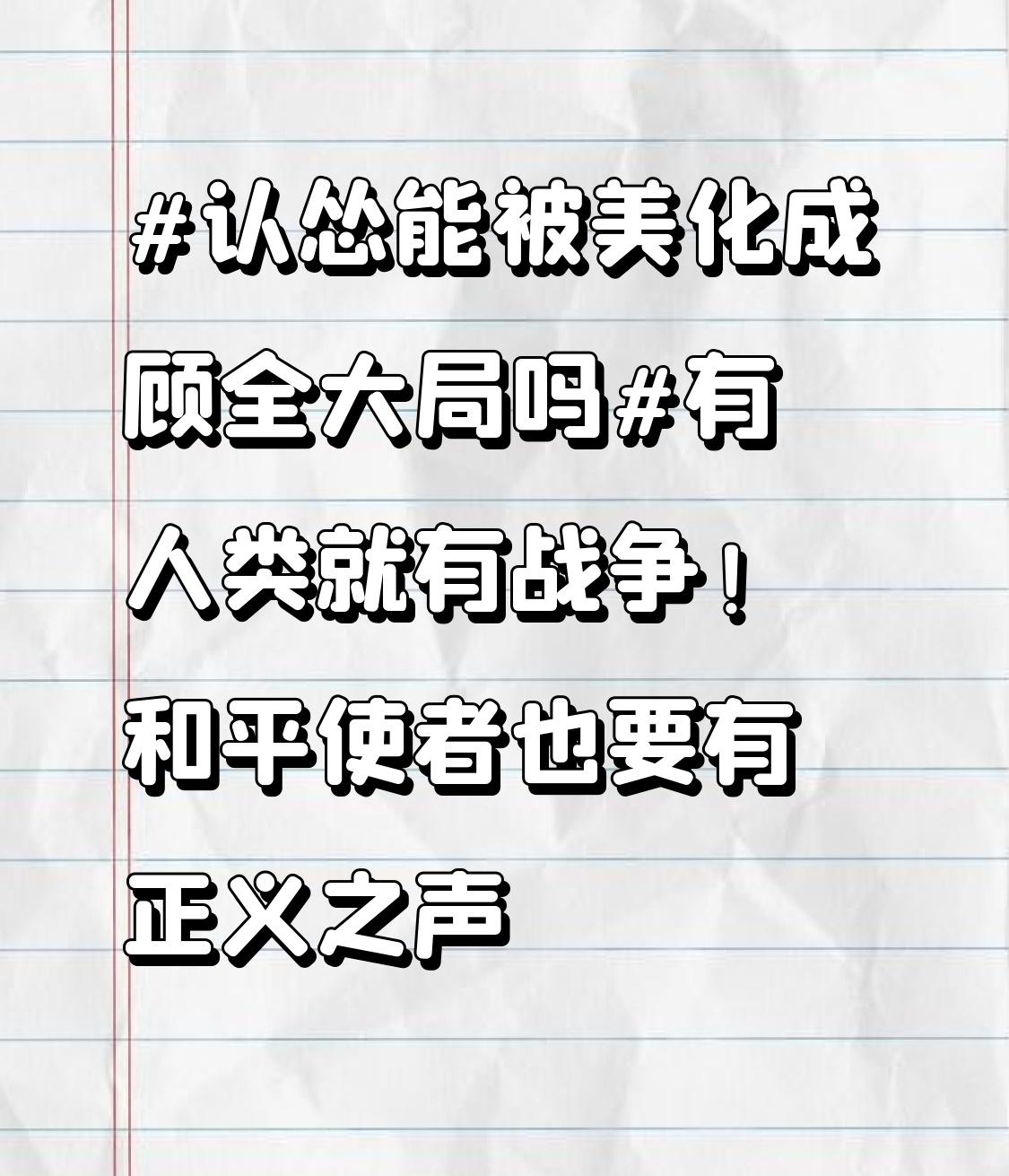 认怂和顾全大局可不能混为一谈。认怂往往是出于懦弱,为了逃避而放弃原则;顾全大局则是权衡利弊后,为了更长远的利益和更宏大的目标暂时妥协。 就像在国际关系中,有些国家打着“和平”旗号认怂退让,实则是对霸权的纵容,这绝不是顾全大局。真正的和平使者,要有正义之声,敢于对不公和侵略说“不”。就像《和平使者》里的主角,为了和平而战,用行动捍卫正义,而不是一味认怂。和平需要勇气和担当,认怂永远换不来真正的和平。