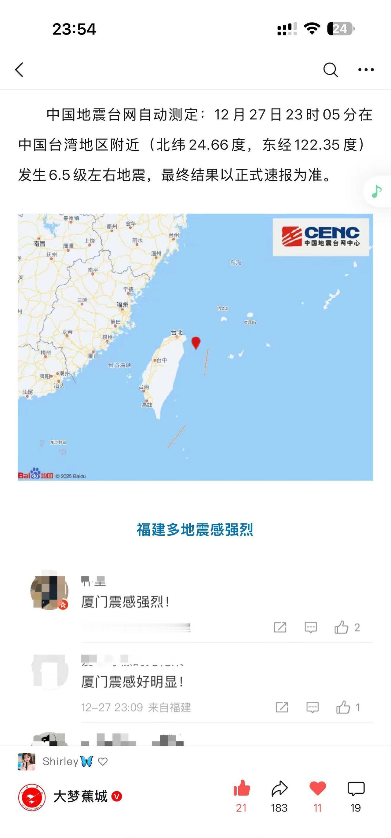 [心][心]刚刚地震提醒我们:生命很脆弱,好好生活…晚安[月亮]
