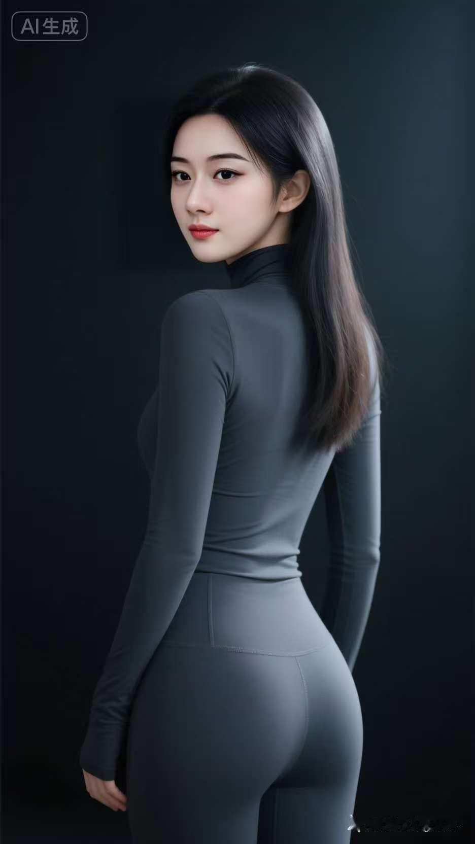 一个穿紧身衣的女孩侧身站立。