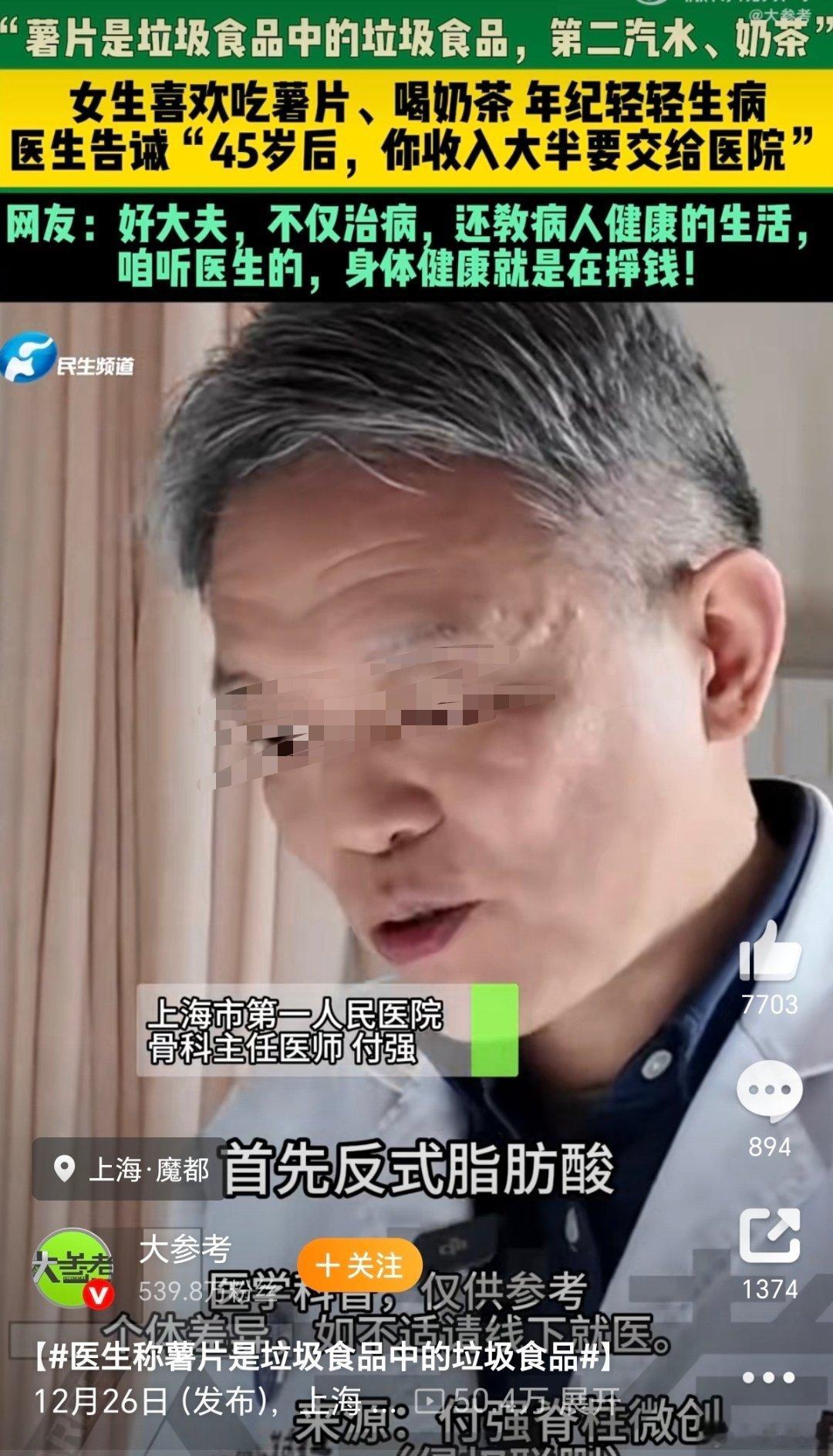 医生称薯片是垃圾食品中的垃圾食品刚去看了这位医生对患者的一些建议。我觉得医生的出发点是好的,但是这个要加个前提,他说的这些内容,仅仅只能作为他个人观点。媒体把这个报道出来,极度容易引发曲解,而且制造焦虑,更会对涉事医生造成不好的影响。科技先锋官