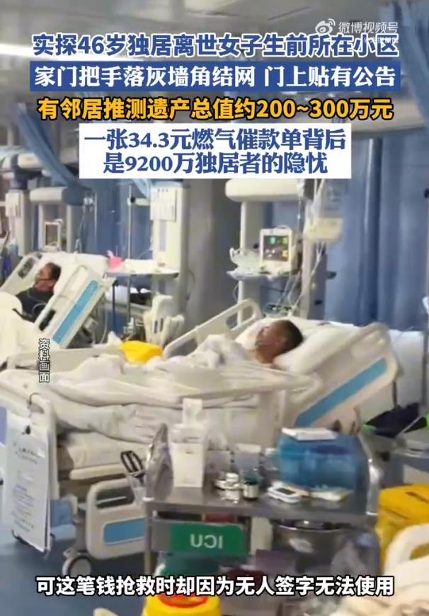 上海独居女子脑溢血离世,有存款却卡在“无人签字”! 46岁独居女子突发脑溢血昏迷,名下躺着近300万遗产,却因为没亲属、没指定意定监护人,存款和保险全被冻结,连救命的医疗费都没法自己支付,最后只能靠远房表弟垫付。 法律规定遗产可以优先清偿债务,可债权申报、法院审定的程序走下来,根本赶不上急救的黄金时间。这是把独居者逼到了生死边缘,钱就在账户里,却救不了自己的命! 大家都在拿 “没后代就是不行”说事,其实这根本不是有没有子女的问题,是制度没给独居者留活路。我国单身人口都突破3亿了,难道上亿人的生死安危,还要靠结婚生子来兜底? 催婚催生解决不了本质问题,赶紧完善制度,让独居者能自己决定医疗救治、自由支配财产,才是正经事!