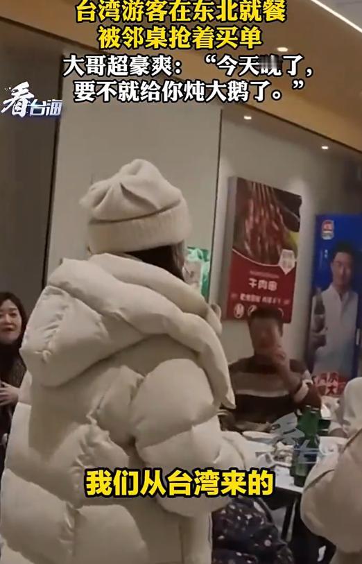 格局打开了!近日,两名台湾女生到齐齐哈尔旅游,在餐厅吃晚饭准备买单时,却被老板告知:你们这桌都算完了!她们这才知道,原来单子被邻桌几位大哥大姐给买了,在表达感谢时,一位大哥表示:两岸一家亲,回祖国,天天拥抱你们! 最近网上有这么个事,火得不行,没有啥花里胡哨的包装,全是实打实的真情实感,看得人心里热乎乎的,网友们都在说:“这才是两岸一家亲最接地气的样子!” 是两个从台湾来的女生,她们趁着旅游的机会,跑到了有“国际烤肉美食之都”之称的黑龙江齐齐哈尔,早就听说这的烤肉是一绝,两人特意挑了家本地人气最旺的馆子,想尝尝正宗的东北味。 那烤盘上的雪花肉滋滋冒油,包着苏子叶和蒜片,一口下去香得直迷糊,两人边吃边夸,完全沉浸在这热火朝天的烟火气里,压根没注意旁边的桌子有啥动静。 等吃饱喝足了,两人招手喊服务员结账,结果老板乐呵呵地走过来说:“这单已经买完了!”这一句话给俩妹子整懵了,还以为老板弄错桌号了。 仔细一打听才知道,原来是隔壁桌那几个东北大哥大姐,趁她们不注意悄悄把单给买了,这突如其来的好事儿让两人又惊喜又不好意思,赶紧起身过去道谢。 面对她们的连声道谢,其中一个东北大哥豪爽地摆摆手,笑着说:“来了东北就是到家了,哪能让客人掏钱呢!” 一听说她们是台湾来的,大哥更来劲了:“也就是这会太晚了,不然高低得给你们整只铁锅炖大鹅,让你们尝尝咱东北真正的硬菜!” 紧接着,大哥特别真诚地补了一句:“2300万人回祖国啊,祖国天天拥抱你们!”这话音刚落,那一桌的大哥大姐们竟然齐声唱起了《阿里山的姑娘》,那歌声虽然未必多专业,但满是真诚,现场气氛那叫一个热烈又温馨。 事后这两个台湾妹子把这段经历拍成视频发到了网上,配文说:“东北人真的太热情了!下次还来。”原来其中一个女生的老公就是齐齐哈尔人,这次来也是为了办婚礼,这已经是她第二次来东北了,没想到还能碰上这么暖心的事。 视频一发出来,立马在网上炸开了锅,评论区里全是点赞和感动的声音,有的网友说:“东北人的‘抢单式’热情那可是出了名的,这绝对是表达善意的最高礼仪!” 还有人留言:“隔着屏幕我都觉得暖和,一顿烤肉就把海峡两岸的情谊给连上了。” 不少台湾网友看了也被打动了,纷纷留言说:“好想去东北玩啊,想尝尝大哥说的那只炖大鹅!” 其实只要了解东北人就知道,这种“抢单”真不是为了面子,那是刻在骨子里的实在,在东北人眼里,朋友聚会要抢单,家人团圆要抢单,碰上远道而来的客人,那更得用这种直接的方式表示欢迎。 就像网友说的,东北人抢单时候那种“撕吧”,不是为了吵架,那是为了情义,那种“这顿必须我请”的劲头,藏着最纯粹的好客之道。这次跨越海峡的“抢单事件”,更像是一次温暖的文化碰撞,台湾那边习惯AA制,碰上东北人这种不加掩饰的热情,虽然一开始有点懵,但那种地域隔阂瞬间就被打破了。 更让人感动的是,东北大哥那句“两岸一家亲”,一点都不刻意煽情,却把两岸同胞血浓于水的亲情说透了。 一顿几百块钱的烤肉,一次素不相识的买单,一首大家都会唱的民歌,把“两岸一家亲”从一句口号变成了活生生的现实。 它让我们看到,最动人的感情从来都在这些平凡的日常小事里,不分哪里人,不分你我他,只关乎那份真诚和善良。 现在越来越多的台湾同胞来大陆旅游、工作、生活,每一次这样的暖心相遇,都在拉近咱们心与心的距离。 就像那个台湾女生说的,不管是家人还是朋友来东北,体验感都特别好,这份跨越海峡的温暖,肯定会成为她们最珍贵的旅行记忆。 一顿简单的烤肉,一次意外的抢单,一句真诚的问候,让善意跨越了海峡,让温暖连接了彼此。 希望这样的温情能一直传下去,希望两岸同胞常来常往,在一次次真诚的相聚中,让亲情越走越近,让情谊越来越深,毕竟咱们本来就是同根同源、心连心的一家人。 对此你怎么看? 信源:看看新闻Knews